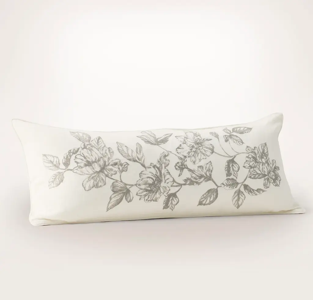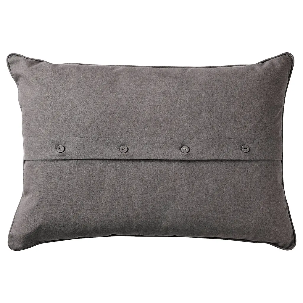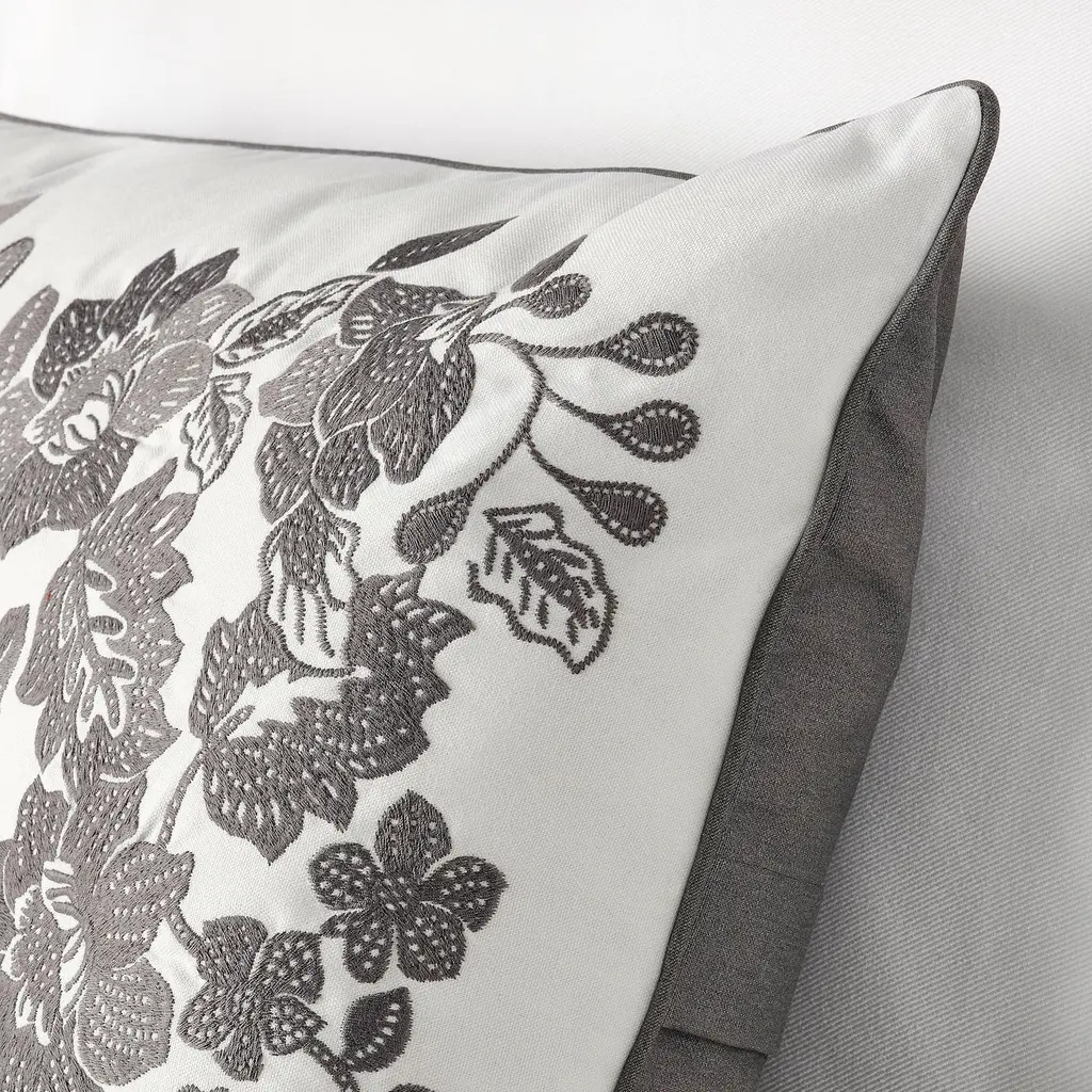 SKUGGNÄVA Cushion - white/gray 16x23 ". The cushion has decorative embroidery. The buttons make the cover easy to remove. Soft, resilient polyester filling holds its shape and gives your body soft support.