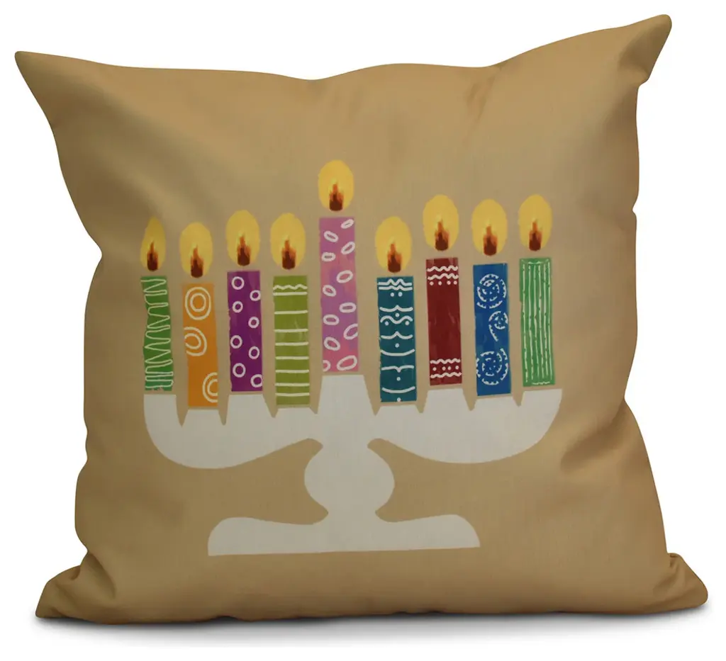 Snow Colored Banner Day Hanukkah Polyester Throw Pillow, 16"x16"