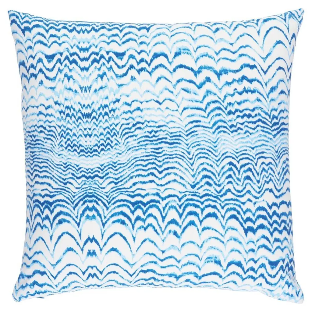 Shades of blue waves roll across this spa inspired accent pillow. It is truly an ideal choice in a coastal sitting area.