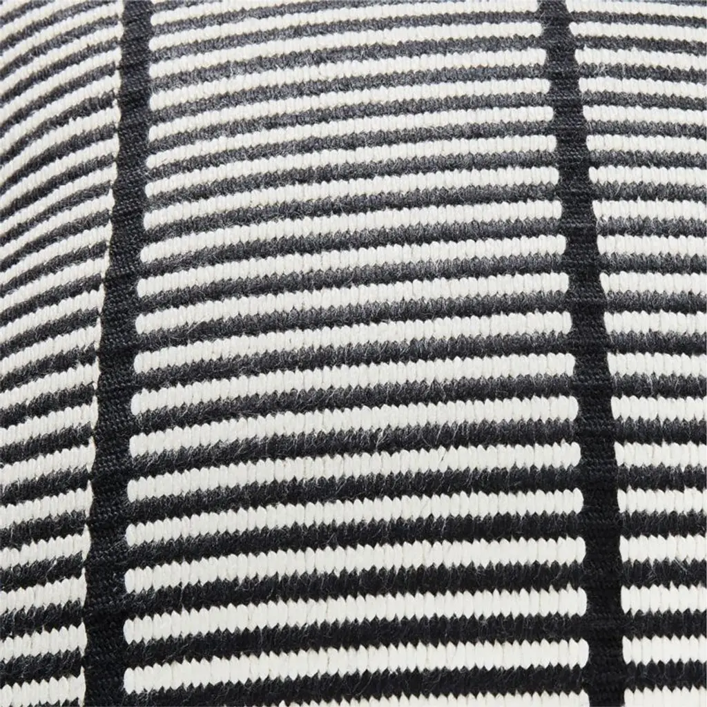 Redone in a modern black-and-white color palette, throw pillow reimagines a 1966 handwoven tapestry by California creative duo Evelyn and Jerome Ackerman. The silk/cotton blend on front makes for a delicate and visually compelling weavea testament to the enduring legacy of the Ackermans' artistic contributions to California modernism. CB2 pillows include a pillow insert in your choice of feather down or down alternative. CB2 exclusive.Detroit natives Evelyn and Jerome Ackerman founded ERA Industries in 1956. For 50 years, the Los Angeles-based couple played a central role in shaping the California midcentury modern movement. The Ackermans' first woven tapestry was featured on the cover of the Los Angeles Times Home Magazine in 1957. Presented in collaboration with Ackerman Modern, the pieces in this collection recreate the couple's iconic midcentury designs using original drawings and archival photographs.