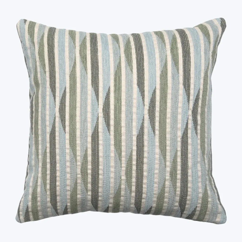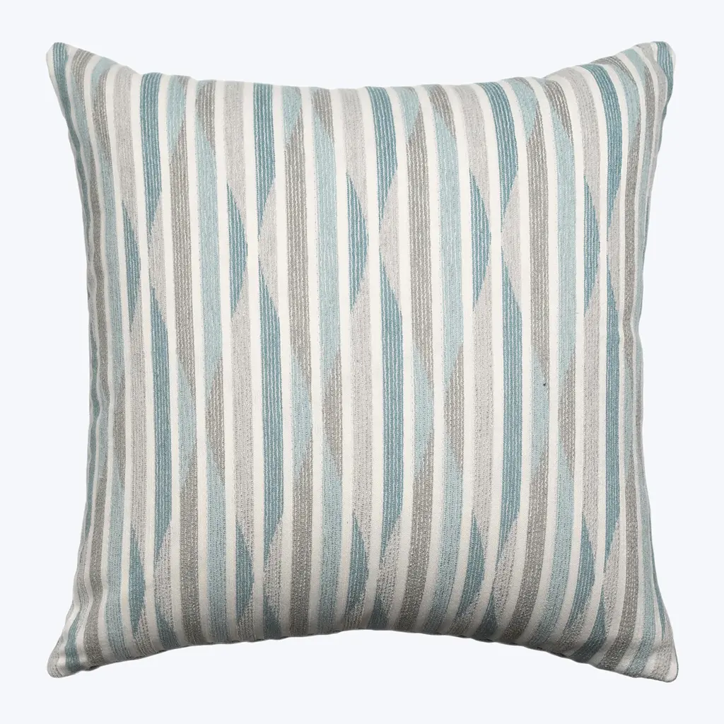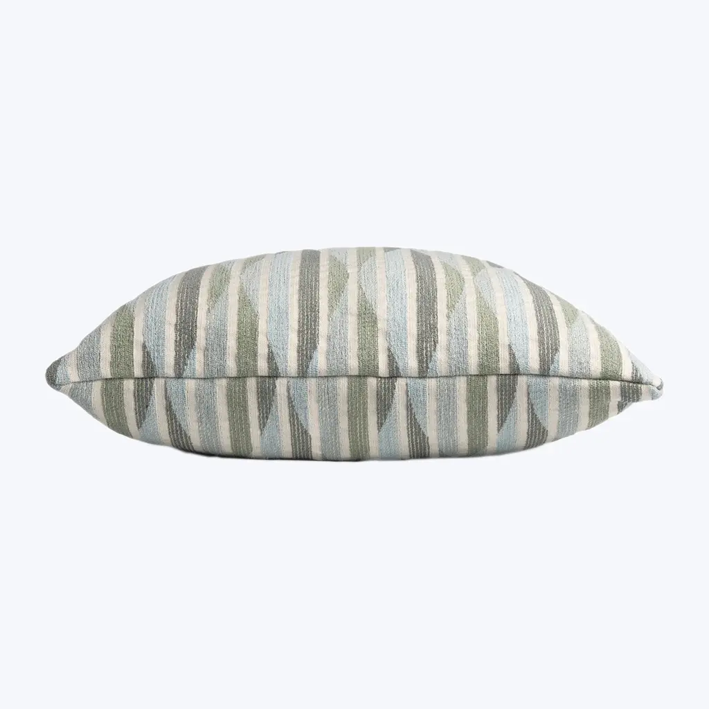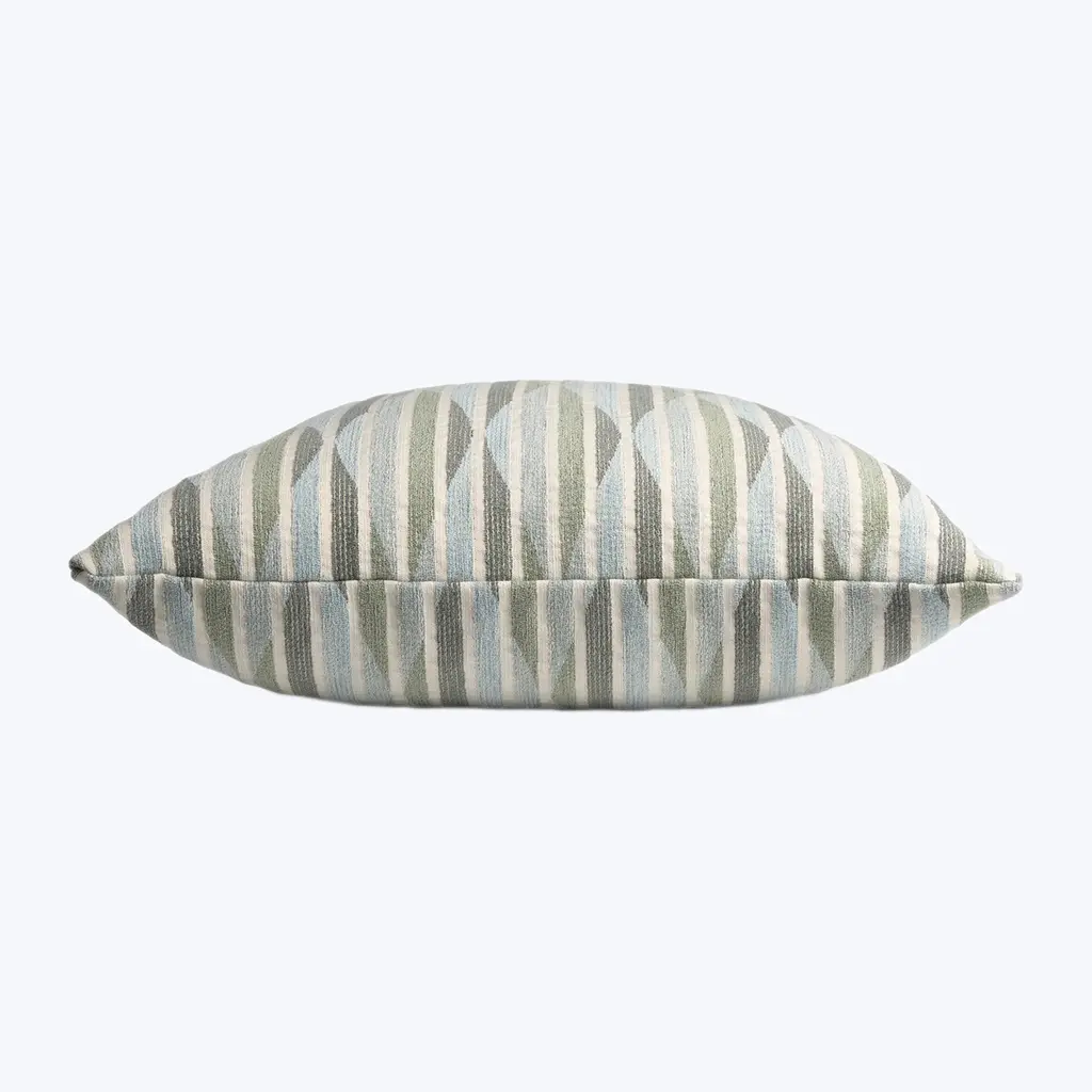 Discover the Stripe Ogee Performance Pillow Mist by Kevin O’Brien Studio. Handmade in Philadelphia, this refined pillow features a captivating ogee pattern in a soft, earthy palette. An elegant addition to understated spaces. Crafted in weather-resistant performance fabric. Style with the Molto Performance Lumbar Pillow Avocado.