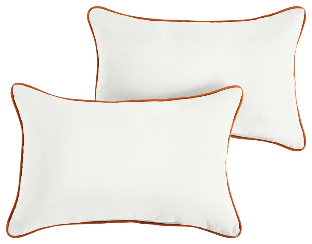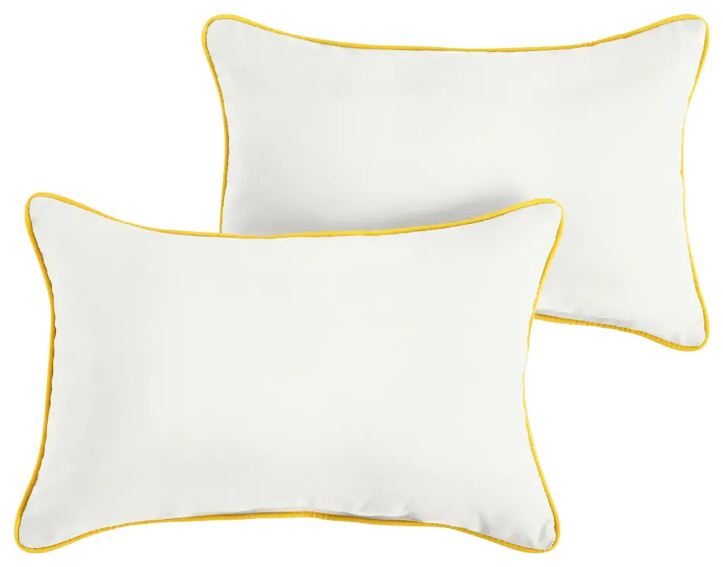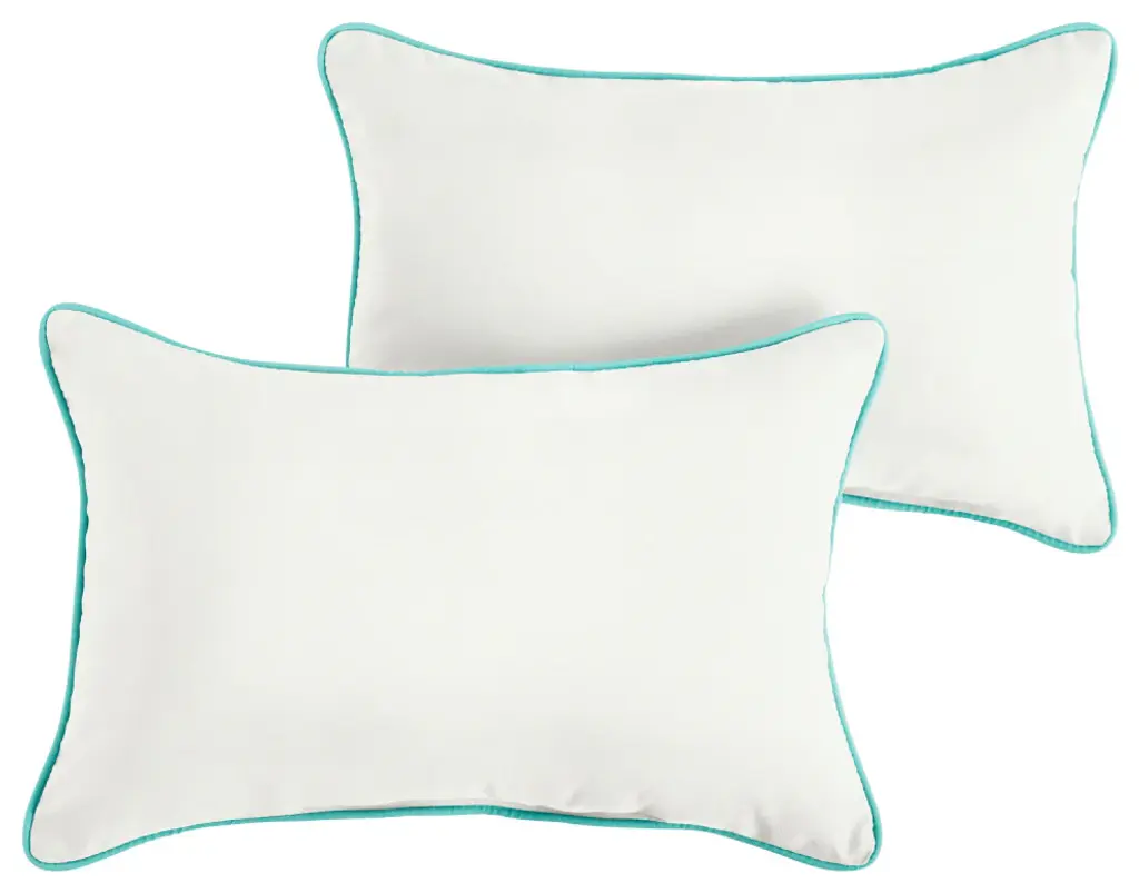 Make outdoor entertaining more pleasurable for family and guests with this set of two outdoor lumbar pillows. Offering ergonomic support as well as a splash of fresh style, each pillow delivers a beautiful palette with a striking base and contrasting edge cording that accentuates its profile. Durable UV and fade resistant fabric goes the distance for challenging outdoor elements and maintains its structural integrity as well as its tasteful aesthetics. Each pillow in this set of two outdoor lumbar pillows is filled with pure recycled fiber and sewn closed.