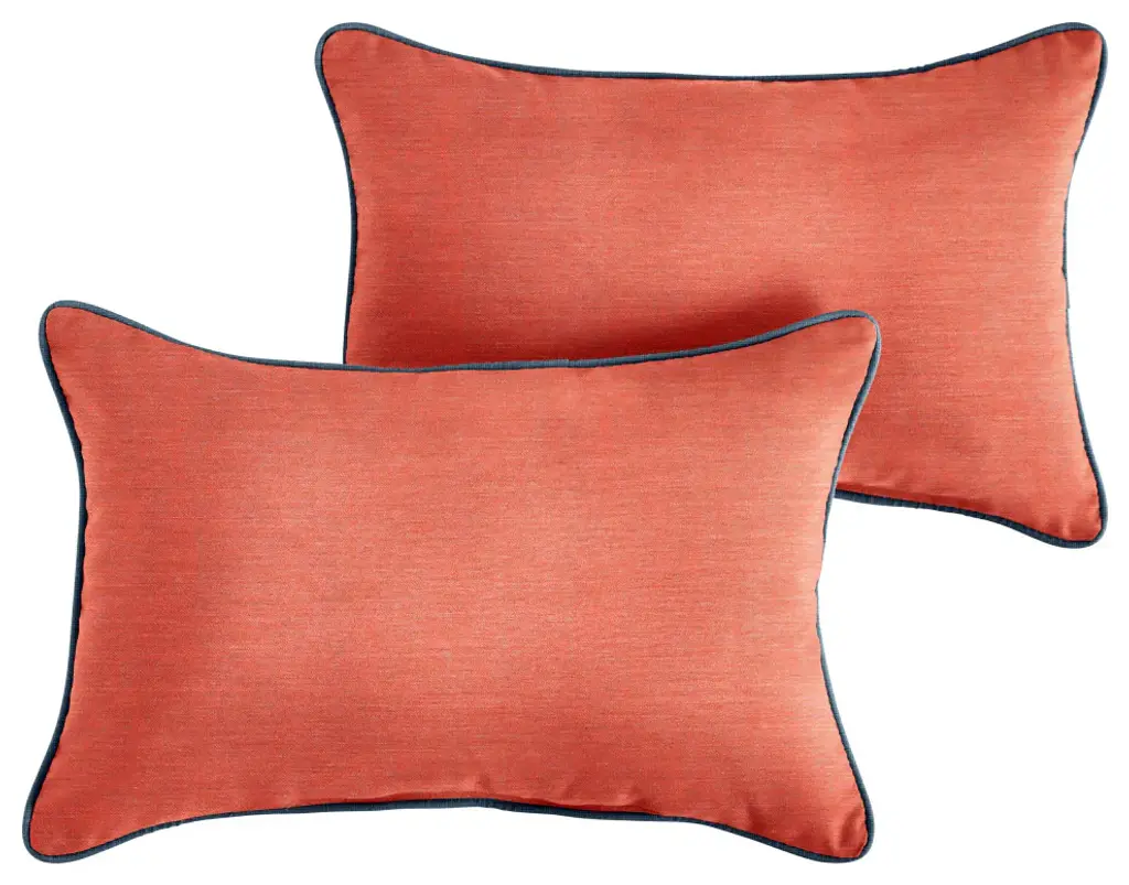 Make seating and lounging as comfortable as possible with this set of two oversized outdoor lumbar pillows. Splashy, bright colors contribute to a festive atmosphere that transforms a patio space into a perpetual party. Recycled filling delivers an ecological boost and supreme comfort. Covered in high performance outdoor fabric that resists UV light, fading, mildew and water, this set of outdoor lumbar pillows delivers ergonomic support as well as pleasing aesthetic beauty.