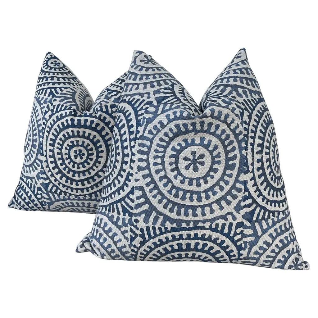Sunbrella Midori Indigo/canvas Jockey Red Outdoor Pillows, Set Of 2, 12x18