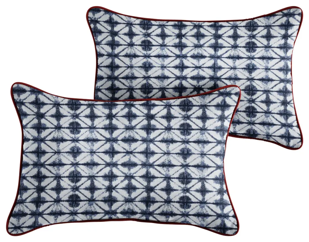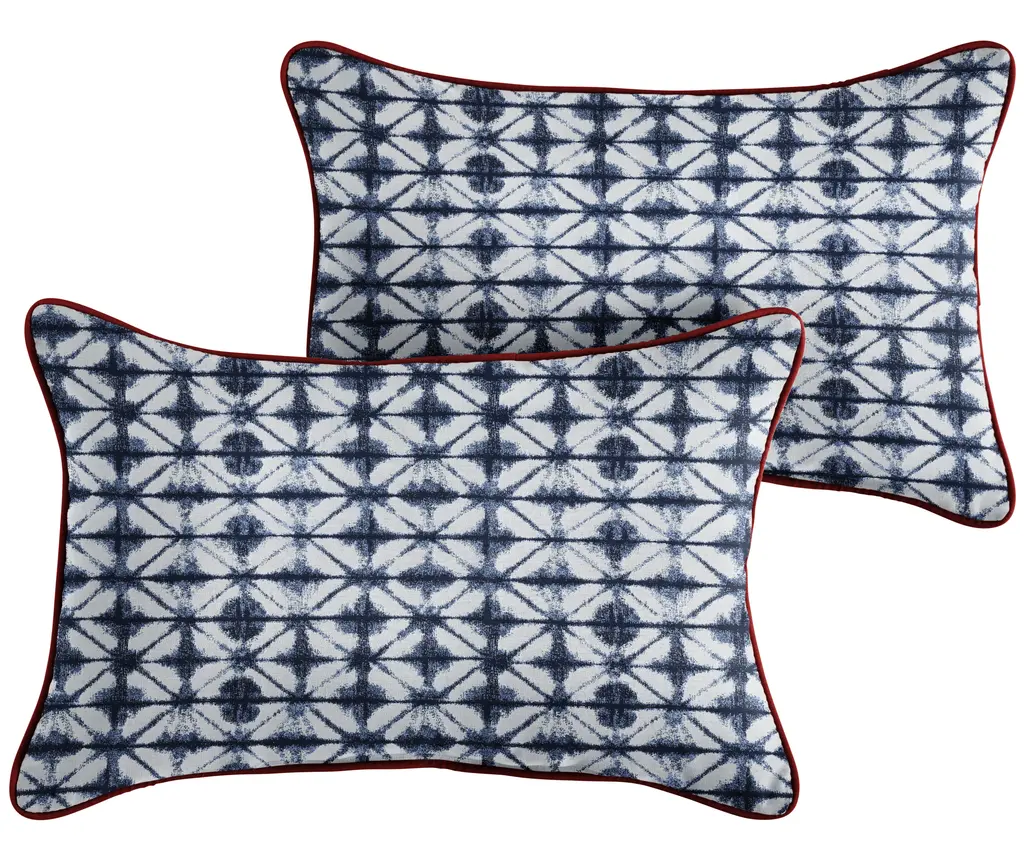 Make outdoor entertaining more pleasurable for family and guests with this set of two outdoor lumbar pillows. Offering ergonomic support as well as a splash of fresh style, each pillow delivers a beautiful palette with a striking base and contrasting edge cording that accentuates its profile. Durable UV and fade resistant fabric goes the distance for challenging outdoor elements and maintains its structural integrity as well as its tasteful aesthetics. Each pillow in this set of two outdoor lumbar pillows is filled with pure recycled fiber and sewn closed.