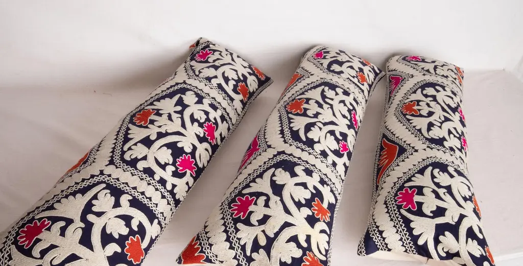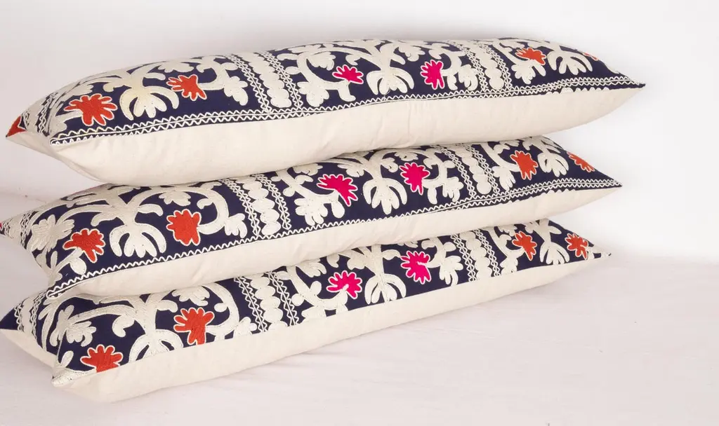 Suzani Lumbar Pillow Cases Fashioned From An Uzbek Suzani, 1960s