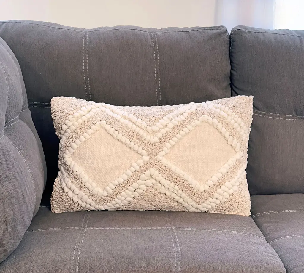 The Nascent, Ember Shaggy 12"x20" Lumbar Pillow, Cream