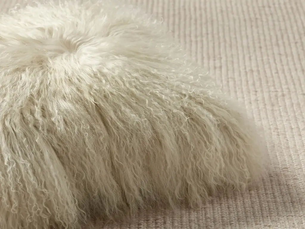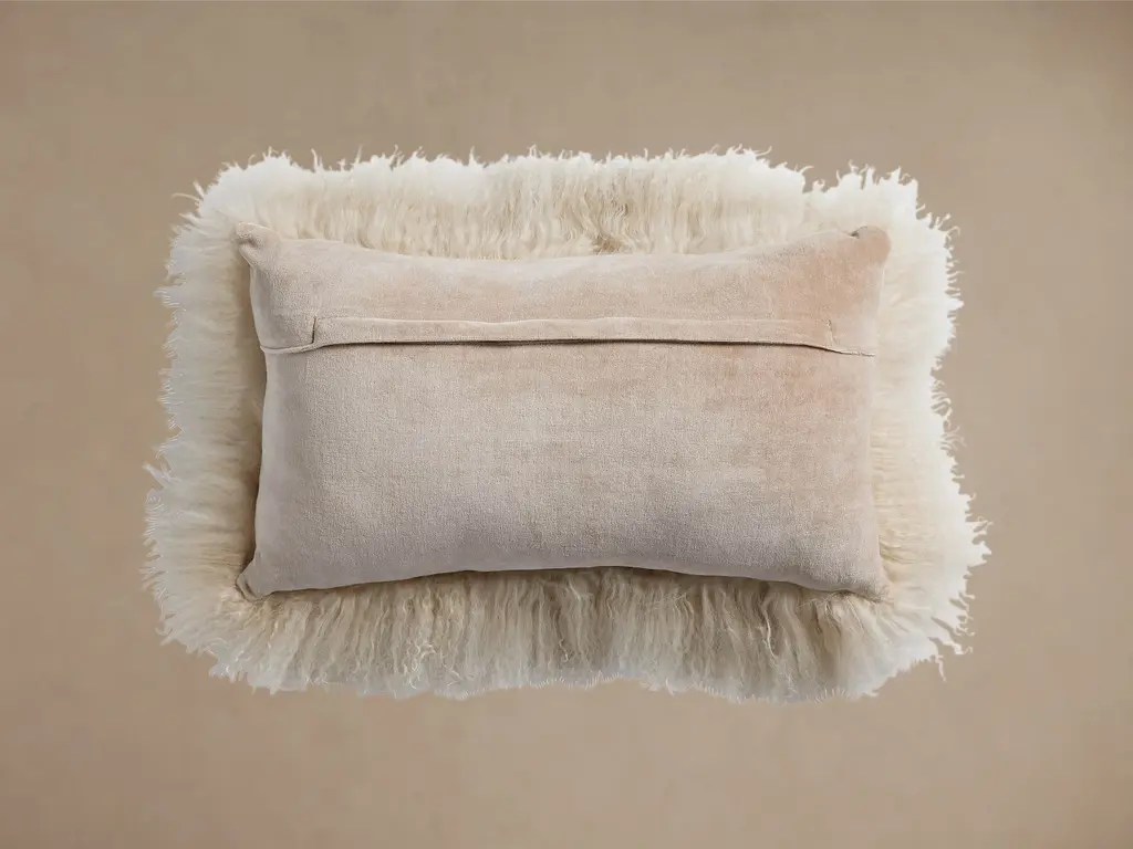 Incredibly warm and soft to the touch, our luxe Tibetan Lumbar Pillow is a comforting accent that adds a cozy touch to any space all year round. Front is crafted from 100% Tibetan sheepskin; back is 100% cotton velvet. Removable cover features hidden zip closure and knife edge details. Included insert features a hypoallergenic 100% polyester filling. Made in China.