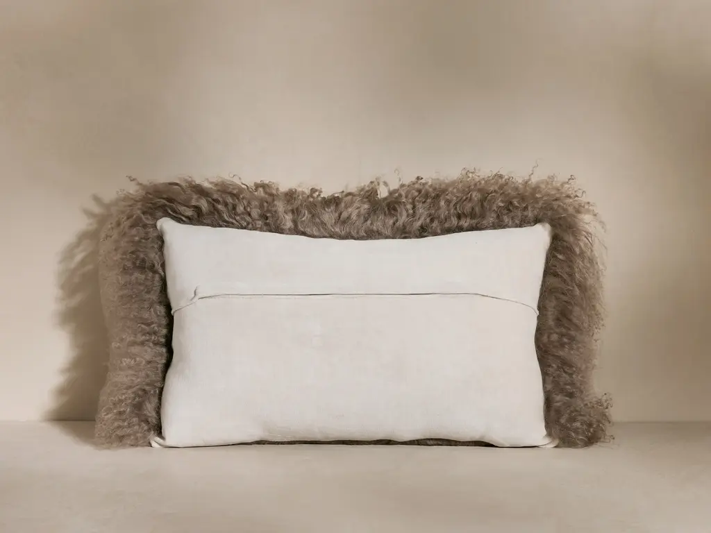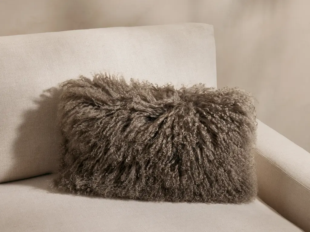 Incredibly warm and soft to the touch, our luxe Tibetan Lumbar Pillow is a comforting accent that adds a cozy touch to any space all year round. Front is crafted from 100% Tibetan sheepskin; back is 100% cotton velvet. Removable cover features hidden zip closure and knife edge details. Included insert features a hypoallergenic 100% polyester filling. Made in China.