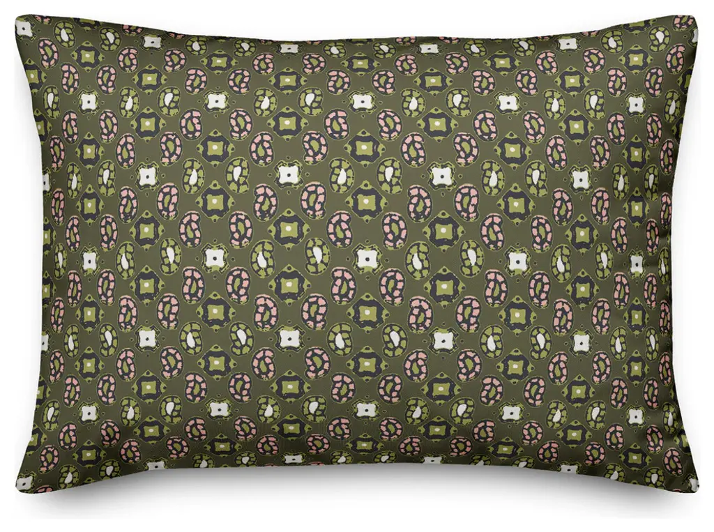 Tiny Paisley Pattern In Green Throw Pillow