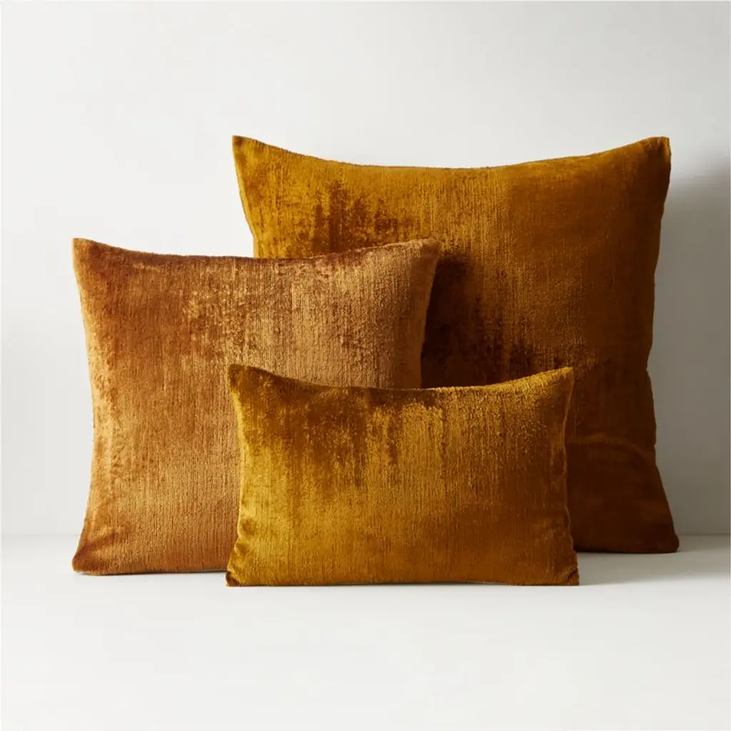 Authentic Turkish silk gives this throw pillow an elegant aesthetic and superior feel. Turkish silk threads are handloomed into an exceptionally rich, velvet-like texture to create a plush pillow. Because the silk is collected from different areas, there will be slight differences in color, as well as variations in the weave due to the handcrafted nature of the process. Natural variations in the nubs and slubs of the silk fiber draw attention to the fabric's beauty, highlighting its understated sheen. Knife edge with a hidden zipper closure, pillow flips to a solid neutral fine linen back. CB2 pillows include a pillow insert in your choice of feather-down or down alternative.