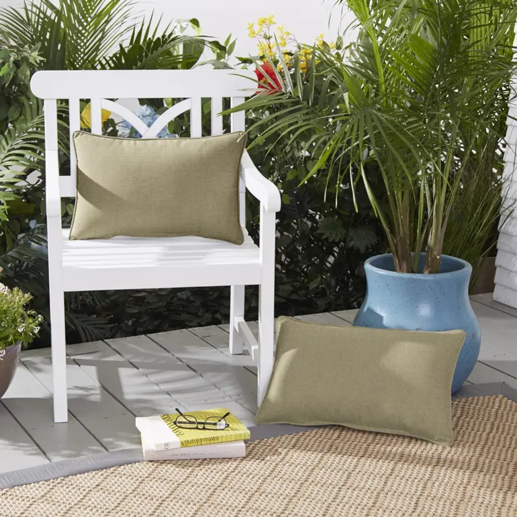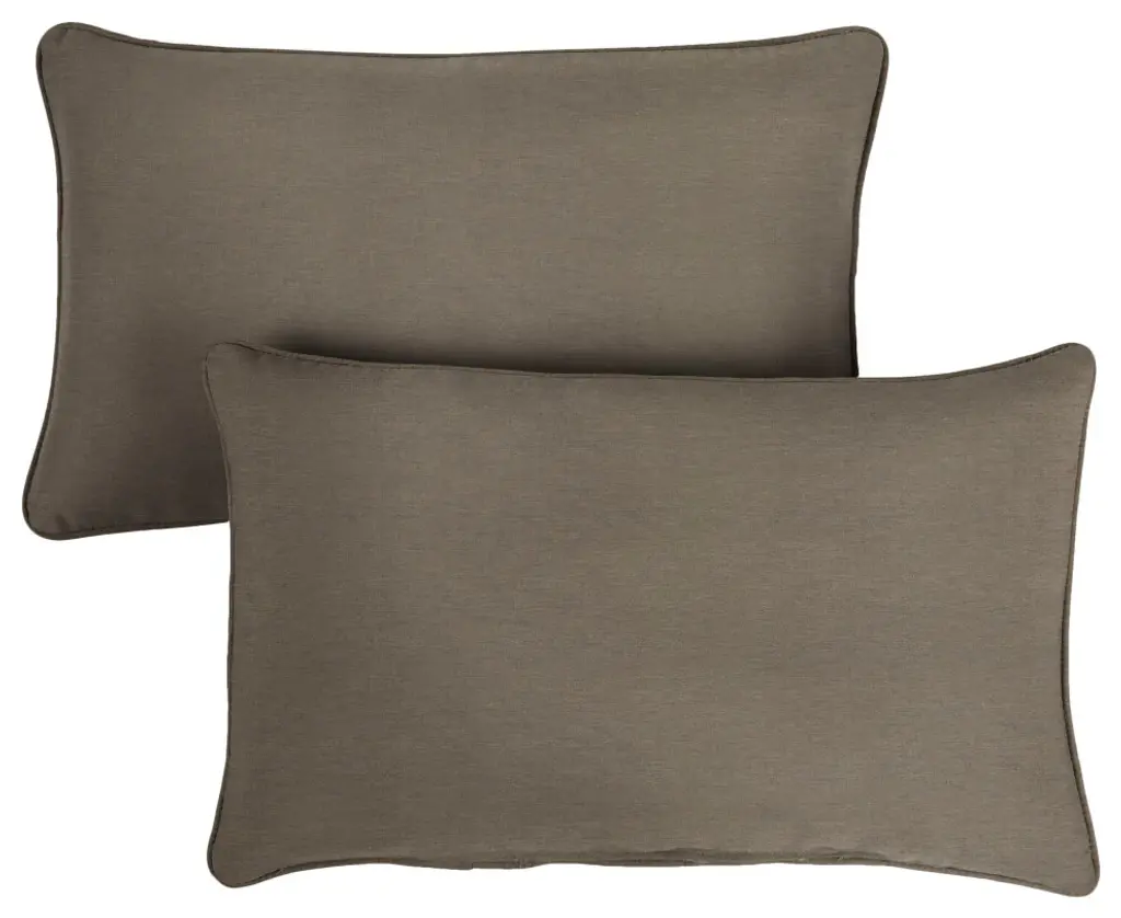 Showcase a calming, neutral palette in your outdoor oasis with the addition of this set of two outdoor lumbar pillows. Offering just the right amount of style with a rectangle silhouette and soft hues, these pillows will complement your patio furniture perfectly while adding comfort and support for you and your guests. They are carefully crafted in the USA out of 100% weather-resistant fabric that will guard against sun, rain, and any other outdoor messes.