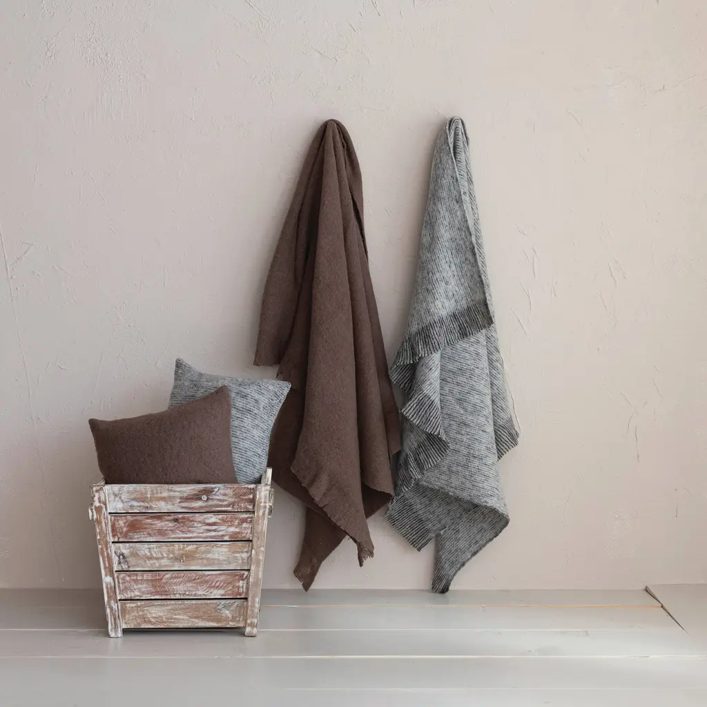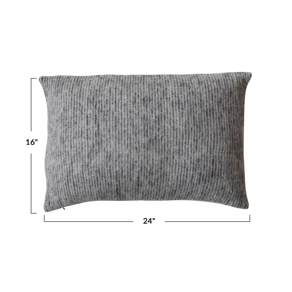 This brushed New Zealand wool striped lumbar pillow in a chic grey hue is the epitome of comfort and style. The wool blend cover, with its subtle stripes, invites a sense of calm and sophistication to any space. Paired with a chambray back for versatility and filled with soft polyester for lasting comfort, this pillow is not just a decorative accent but a plush retreat. Its generous size makes it an impactful addition to the home, offering a serene and inviting presence that complements a variety of decors. Whether it's gracing a minimalist sofa or adding a touch of elegance to a bed ensemble, this lumbar pillow is a testament to timeless design and comfort.Features: