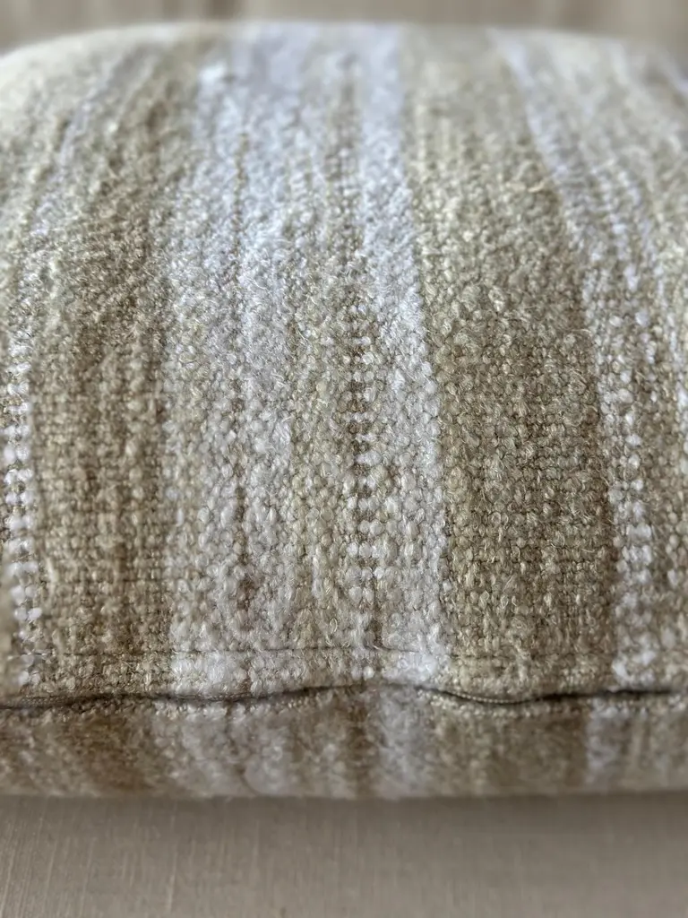 Woven Belgian Linen And Wool Stripe Lumbar Pillow With Down Insert