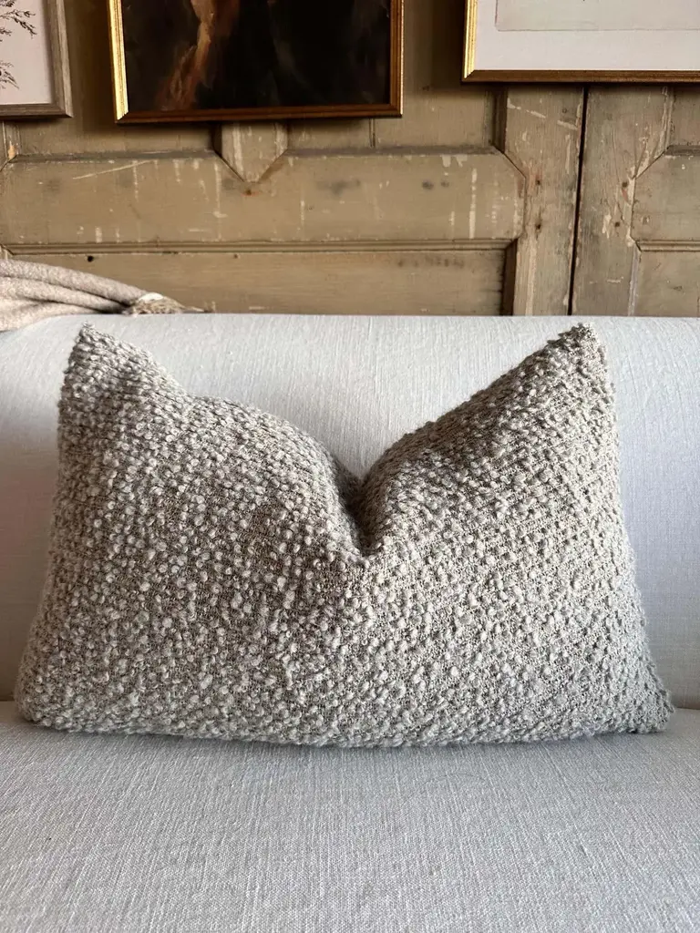 Woven Belgium Wool And Linen Lumbar Pillow In Could Gray Boucle Fabric