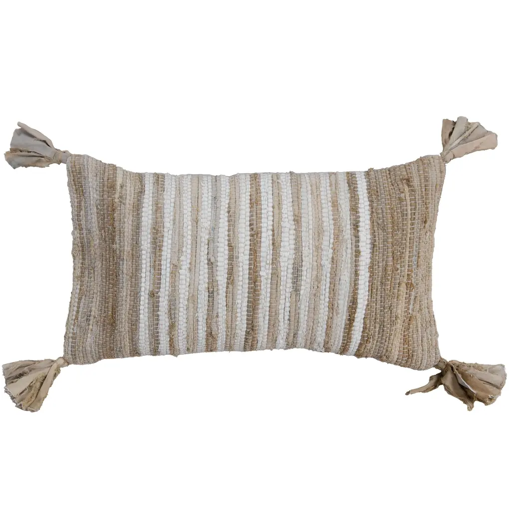Woven Recycled Stripe Lumbar Pillow - Natural / Polyester