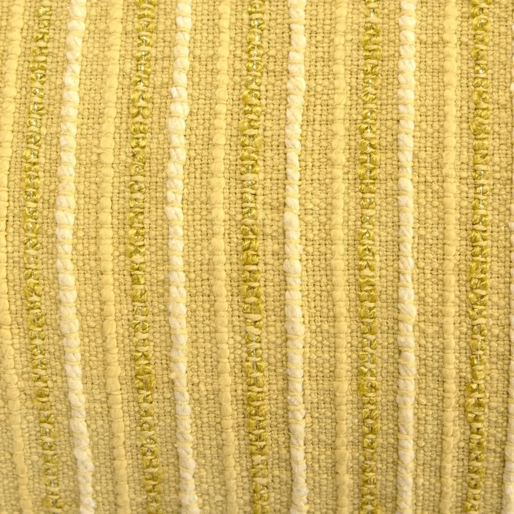 This stunning accent pillow exudes classic charm and timeless appeal, perfect for almost any decor. Measuring 14" x 26", this pillow is thoughtfully crafted with a cotton/viscose blend for extreme durability and comfort to withstand everyday lifestyles. With a woven construction, this pillow embodies transitional style with a touch of modern industrial influence. The stripe patterned solid fabric creates a captivating visual effect, adding depth and dimension in any living space. The light texture of the woven fabric enhances its overall aesthetic appeal with a pop of sunshine color in any room. The tonal stripe is created by skillfully weaving the pattern into the fabric, resulting in a cohesive and sophisticated design. The knife-edged construction adds a polished and refined finish, ensuring the pillow will maintain its shape. Designed for both style and practicality, this accent pillow features a coordinating solid cotton back with a hidden zipper closure. In a cheerful yellow hue, this vibrant accent to your interior is a must-have that is versatile enough to blend and mesh with a variety of styles and elements--to elevate any decor with intrigue and classic style. 85% Cotton 15% Viscose