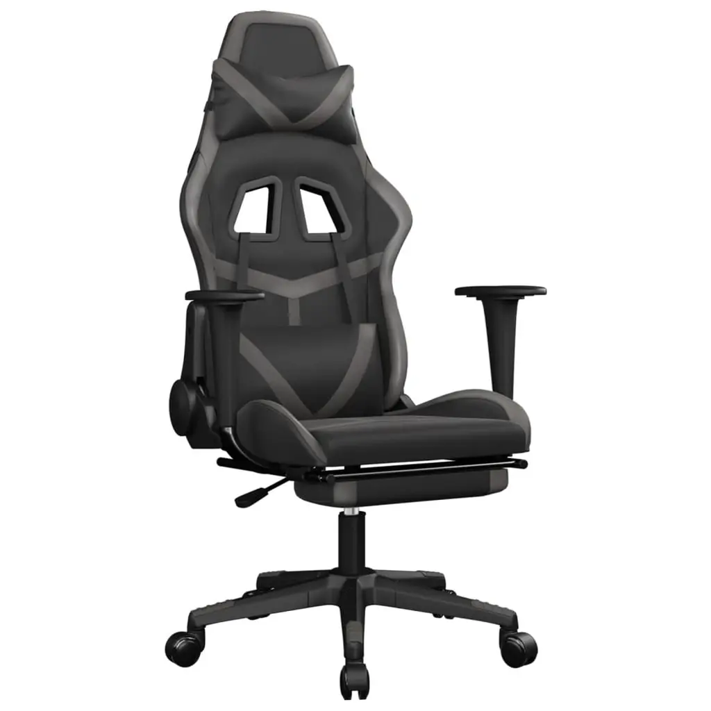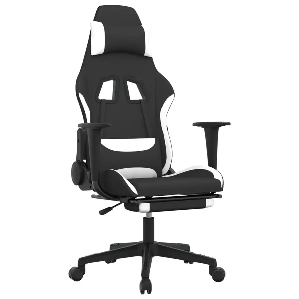 Take a ride in this thickly padded, reclining gaming chair with massaging lumbar and updated rubber ball-bearing skate style wheels that will take your work, and play, to the next level. The removable lumbar pillow will not only support your lower back but will also massage those tense muscles when you plug in the attached 3 ft. USB cord so you can keep that marathon gaming session going without cramping up. When you need a breather from the action, recline this high back chair 95° ~ 175° to relax and open your diaphragm. Reclining chairs cradle your body in a comfortable position while relieving pressure from your back from sitting upright. The arms actually recline along with the back to keep you comfortable. Pull the loop to slide out the footrest, flip it up and take a quick power nap to recharge your batteries. Video game chairs are designed specifically for gamers comfort but will make an excellent ergonomic chair for the office, dorm room, or home office. Easily reach work surfaces without strain with the pneumatic level and elevate your feet on the footrest while typing to relieve leg pressure. A 5-star nylon base and sporty looking casters allow you to move this chair wherever you need it. Spills clean up effortlessly with a solvent based cleaner. Get the ultimate gaming experience when you add our gaming desk with cup holder, headphone hook, and monitor/smartphone stand or gamer workstation with headphone holder and cable management.