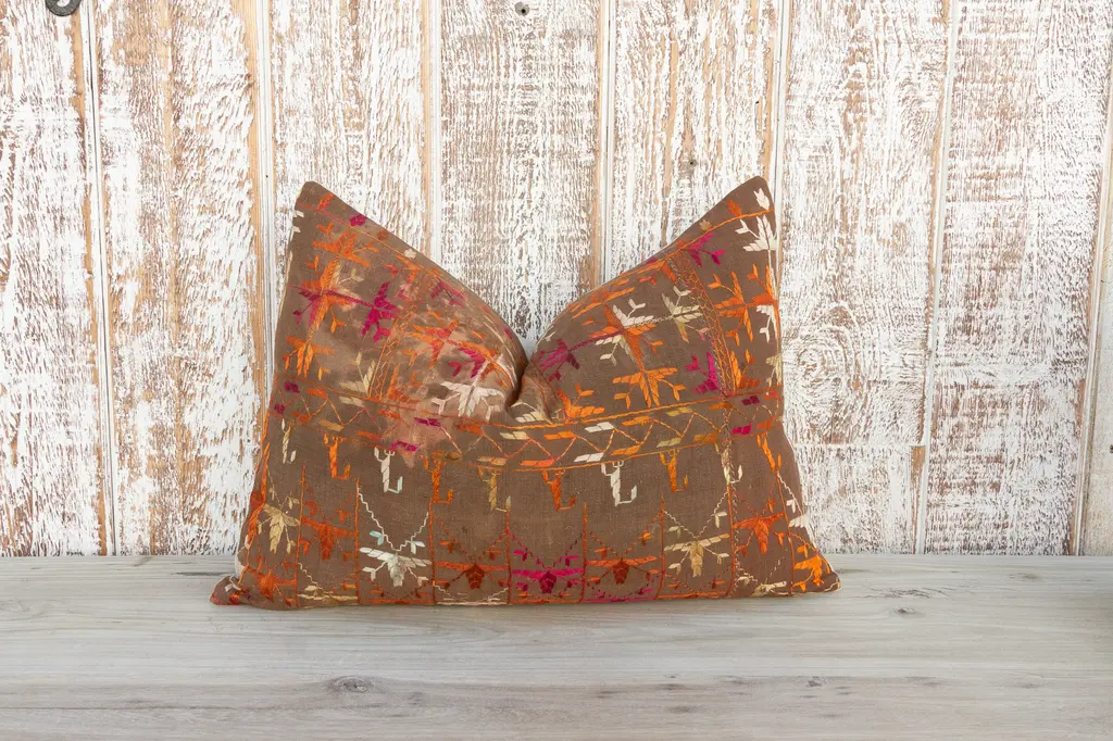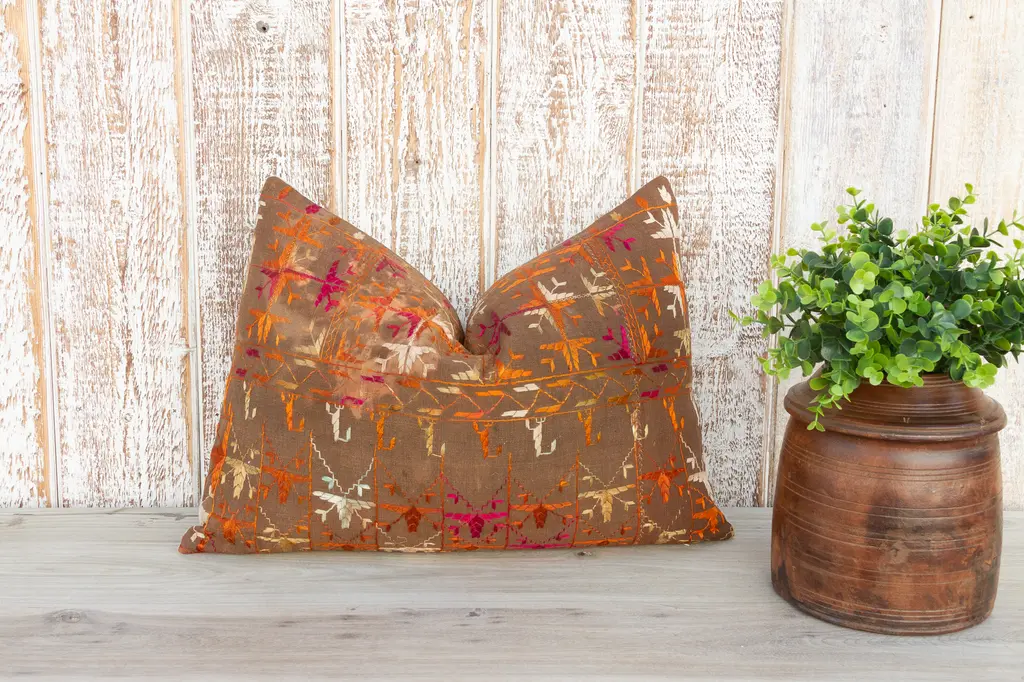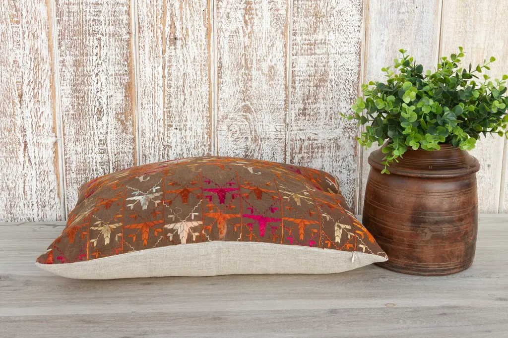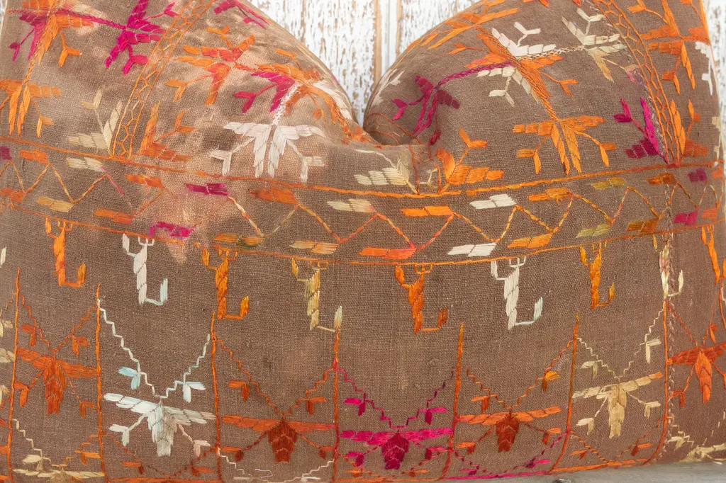 This colorful and luxurious Bagh Phulkari pillow features beautiful hand-done silk embroidery on top of a cotton fabric. Phulkari means "flower work" and is very descriptive of this vibrant, delicate pillow. Phulkari fabrics are often used in ceremonies concerning birth and marriage. Pillow has a hidden zipper and comes with a down filler.