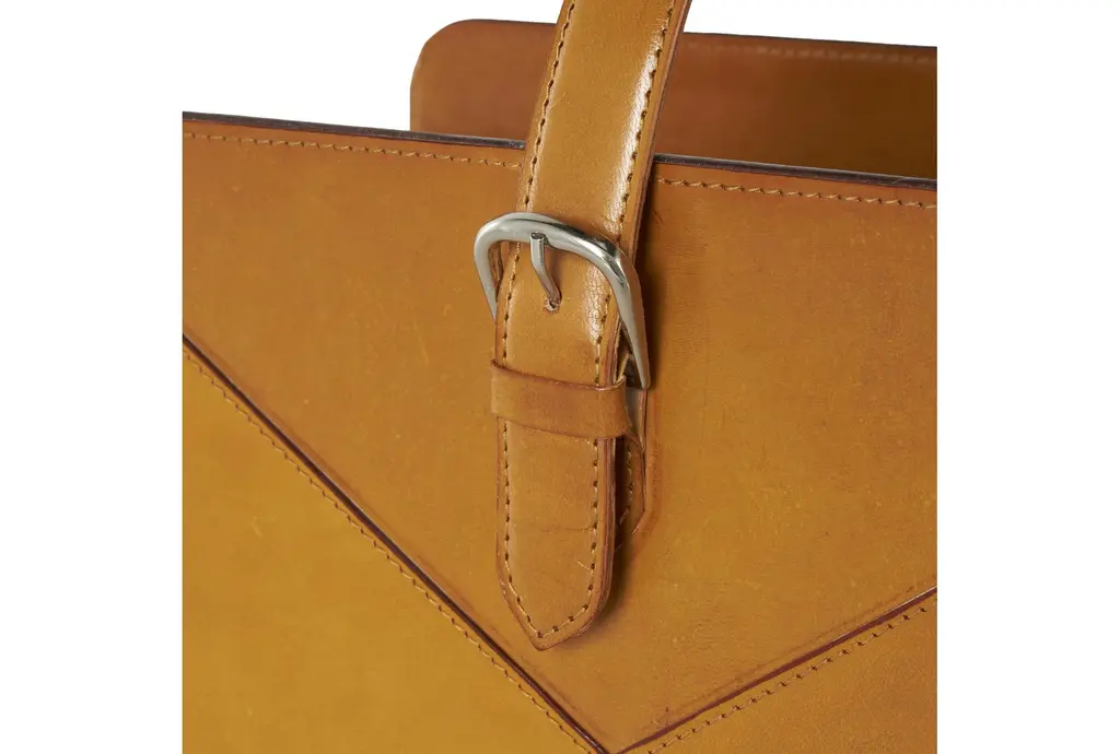 15" X 17" Brown Leather Handmade Single Slot With Curved Buckle Handles Magazine Holder