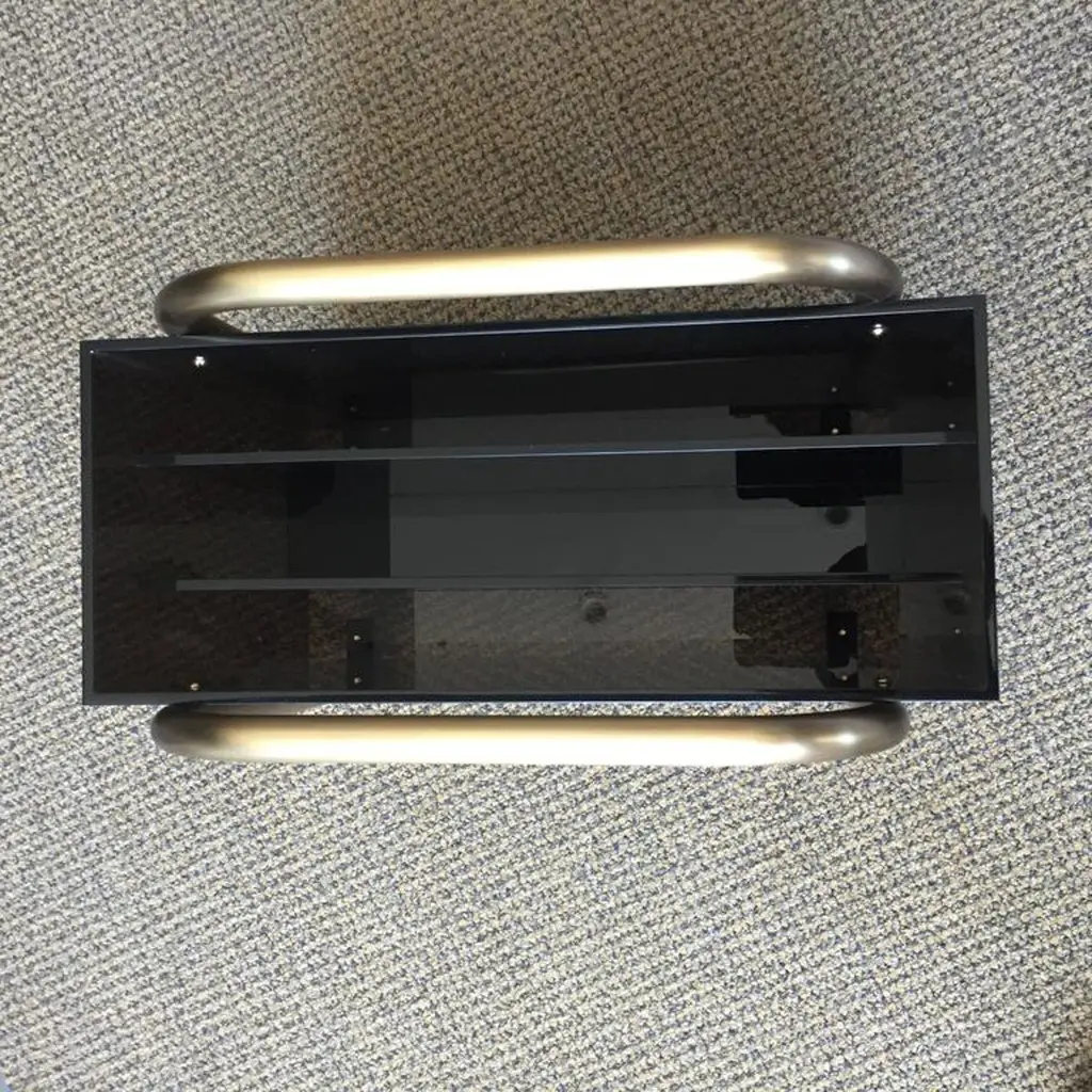 Beautiful and rare magazine holder designed and manufactured by Charles Hollis Jones in the 1970s.The piece is executed in bronzed Lucite having a tubular brass frame, having three compartments to store books or magazines.The piece is in very good original condition, the brass has a beautiful lightly aged patina, the bronzed Lucite compliments the brass frame beautifully.Measurements:15 1/2" wide x 8" deep (including frames x 6 1/2" wide (no frames) x 16" high.If you are coming to our show room to see a piece please call ahead of time because due to our large inventory some items are available by appointment only.All of our sales are final, no refunds, no exchanges and no returns no exceptions.