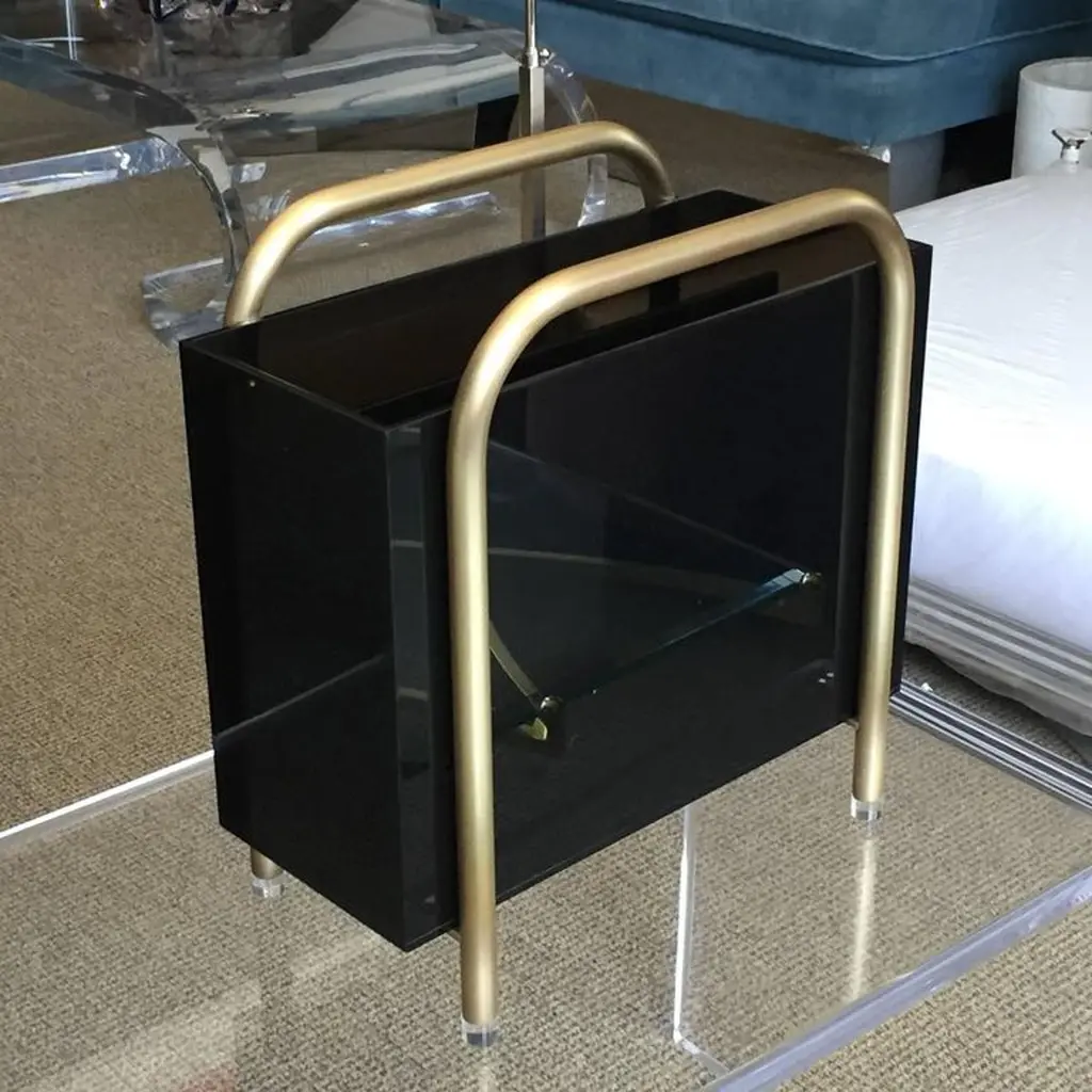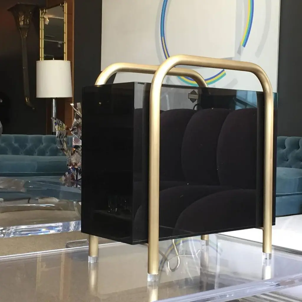 Brass And Bronzed Lucite Magazine Holder By Charles Hollis Jones