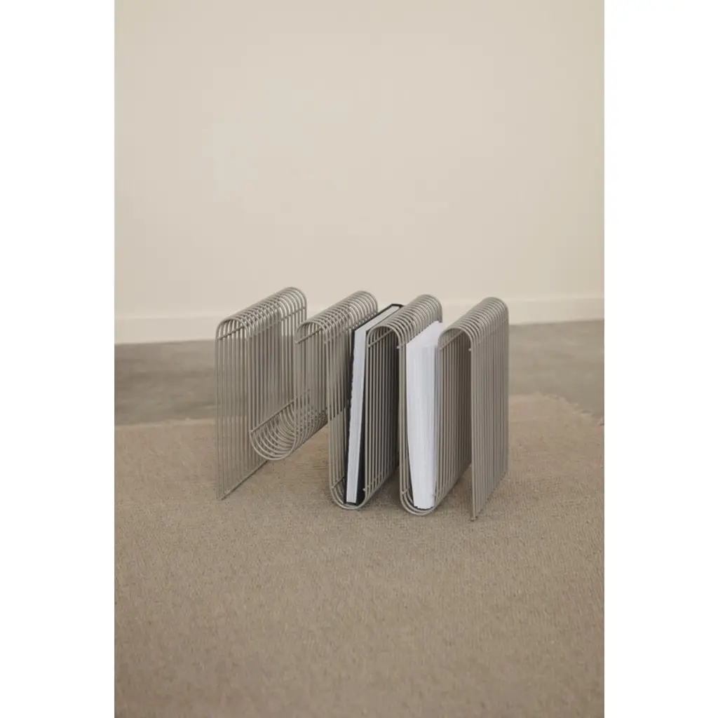 The Curva magazine holder from the Danish brand AYTM catches the eye with its curvy shape and stylish finishing. Made of bent and coated iron, Curva is perfect for storing magazines and papers in an exceptionally fascinating way. The 11.81 in (30 cm) high magazine holder comes with black, silver, golden or taupe finish, and it can be placed either on a floor or table.