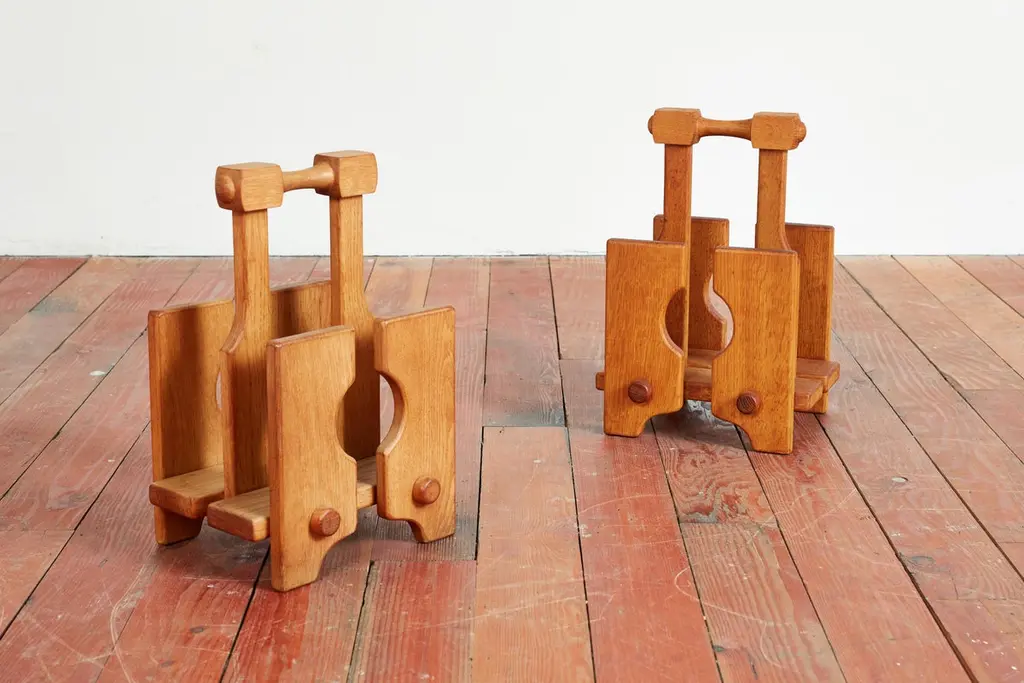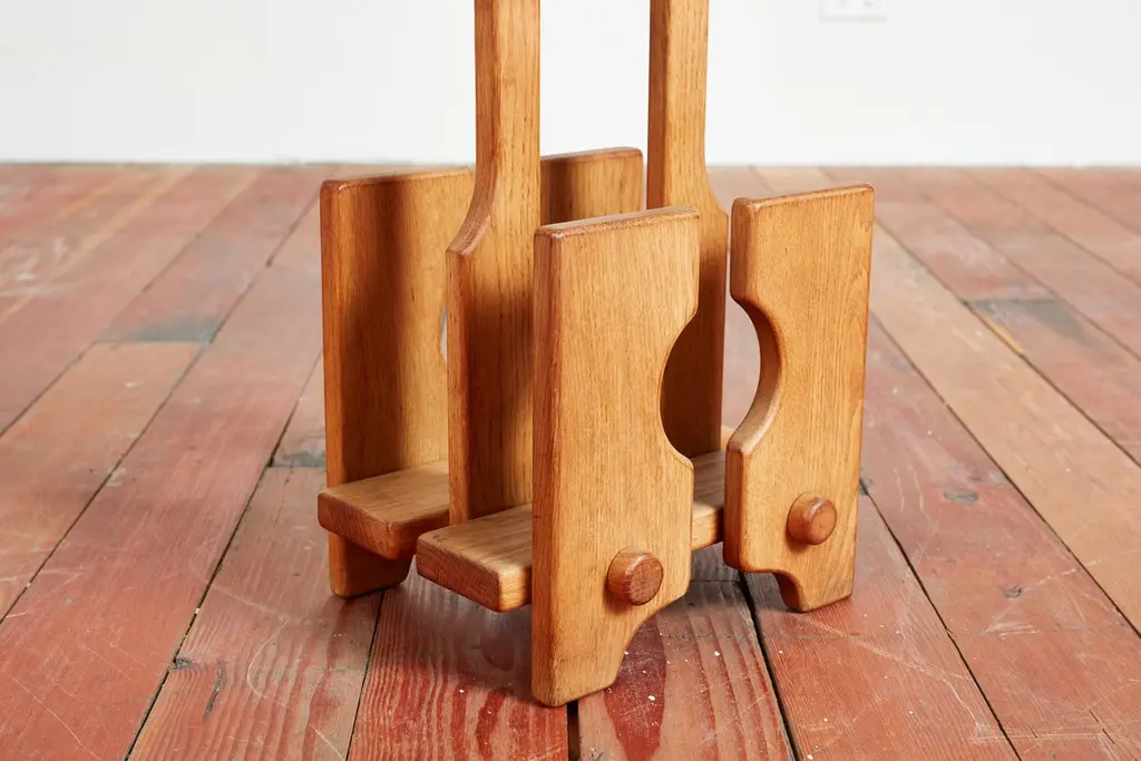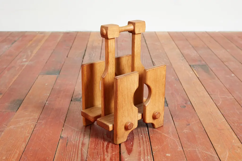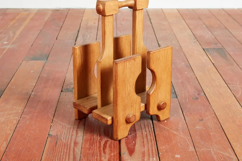 Guillerme et Chambron magazine or book holder with wonderful oak patina and thick dowel design Sold individually