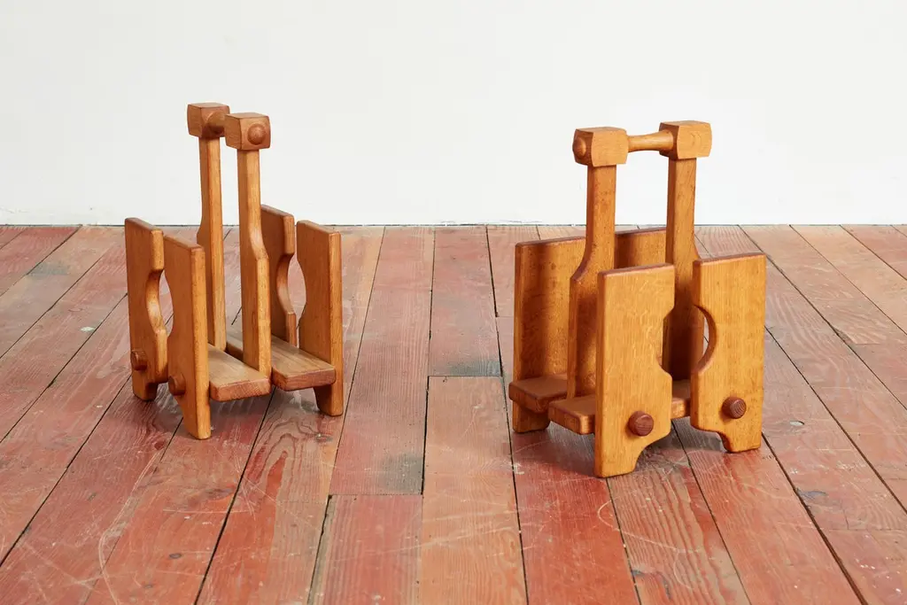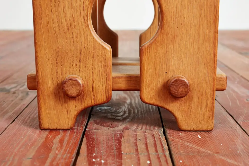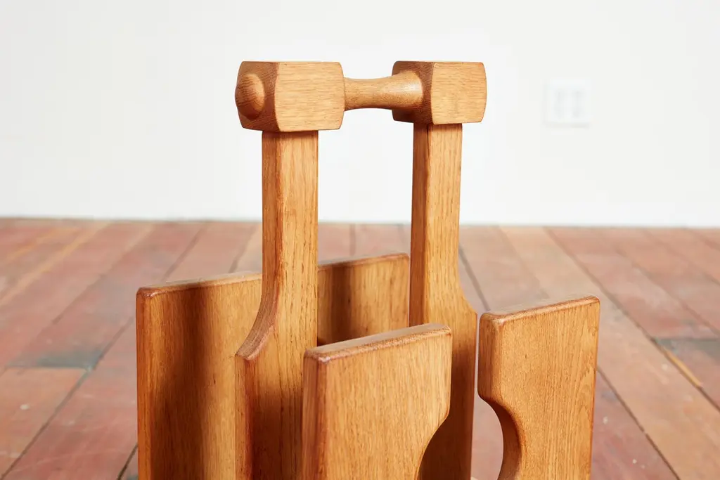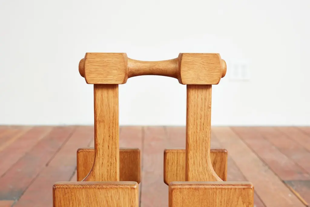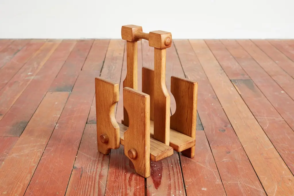 Guillerme et Chambron magazine or book holder with wonderful oak patina and thick dowel design Sold individually