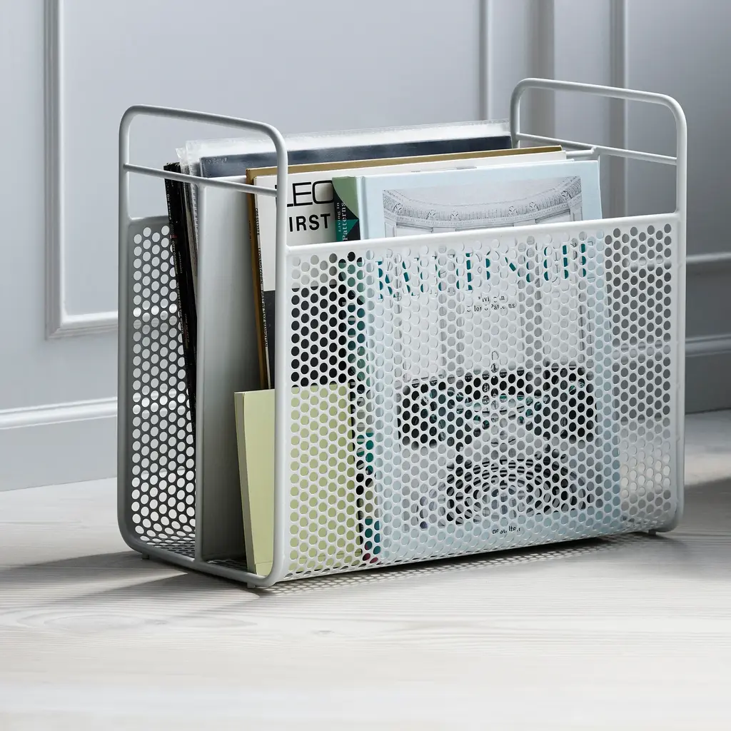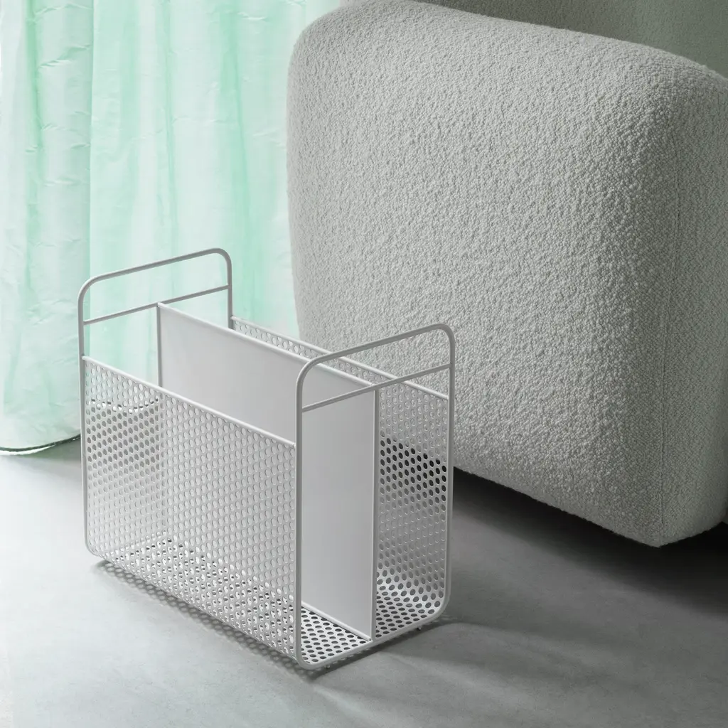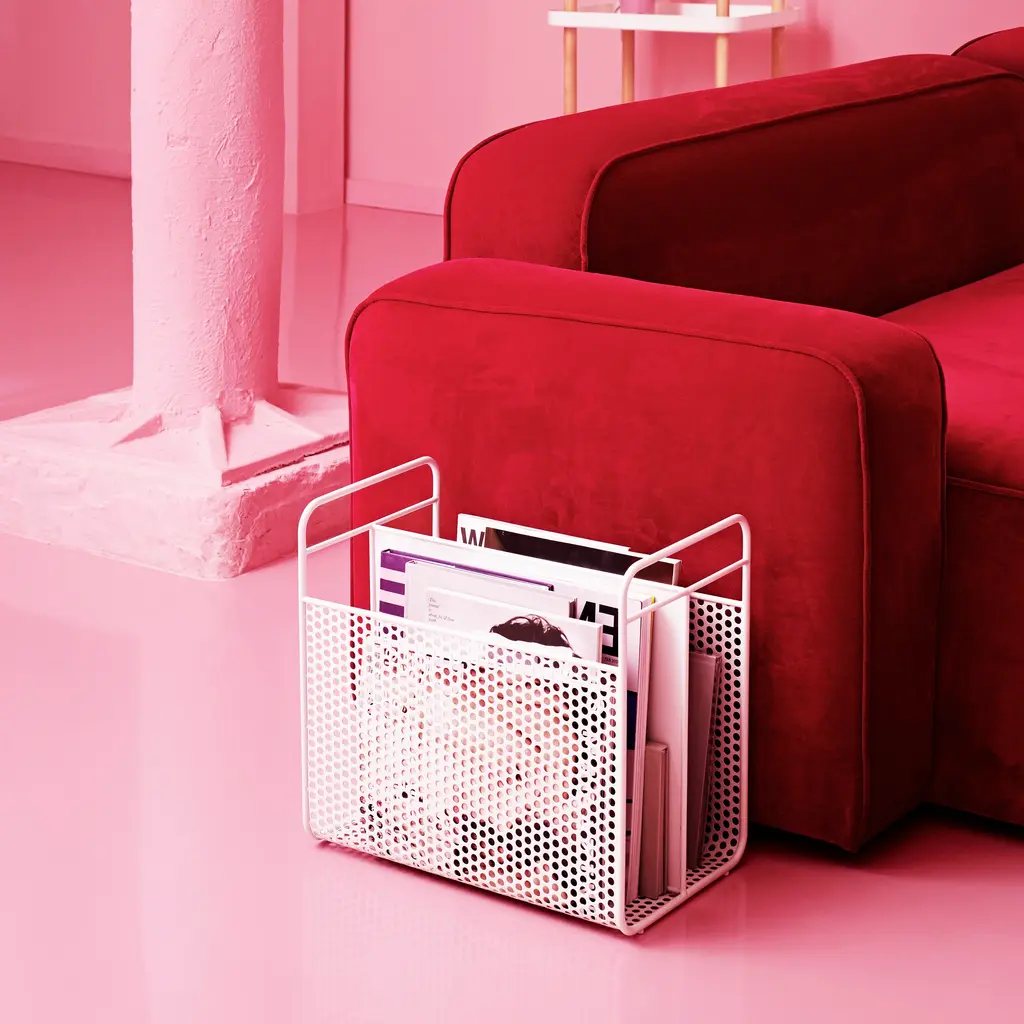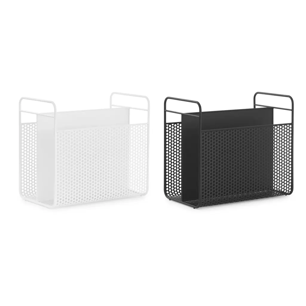 Ironically, the look of vintage computers inspired Simon Legald's very un-virtual notion of a magazine rack. Analog's hole-patterned sides emulate computer equipment of the '90s that had similar perforations for cooling the electronics. That said, the shape is classic, with the familiar separate compartments and practical handles that form the basis for the design, updated in industrial powder-coated steel for a modern edge.