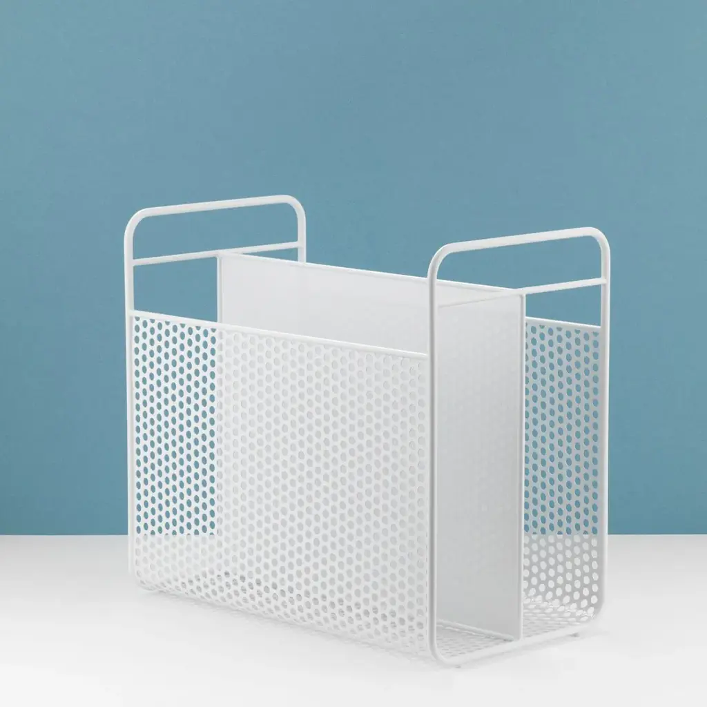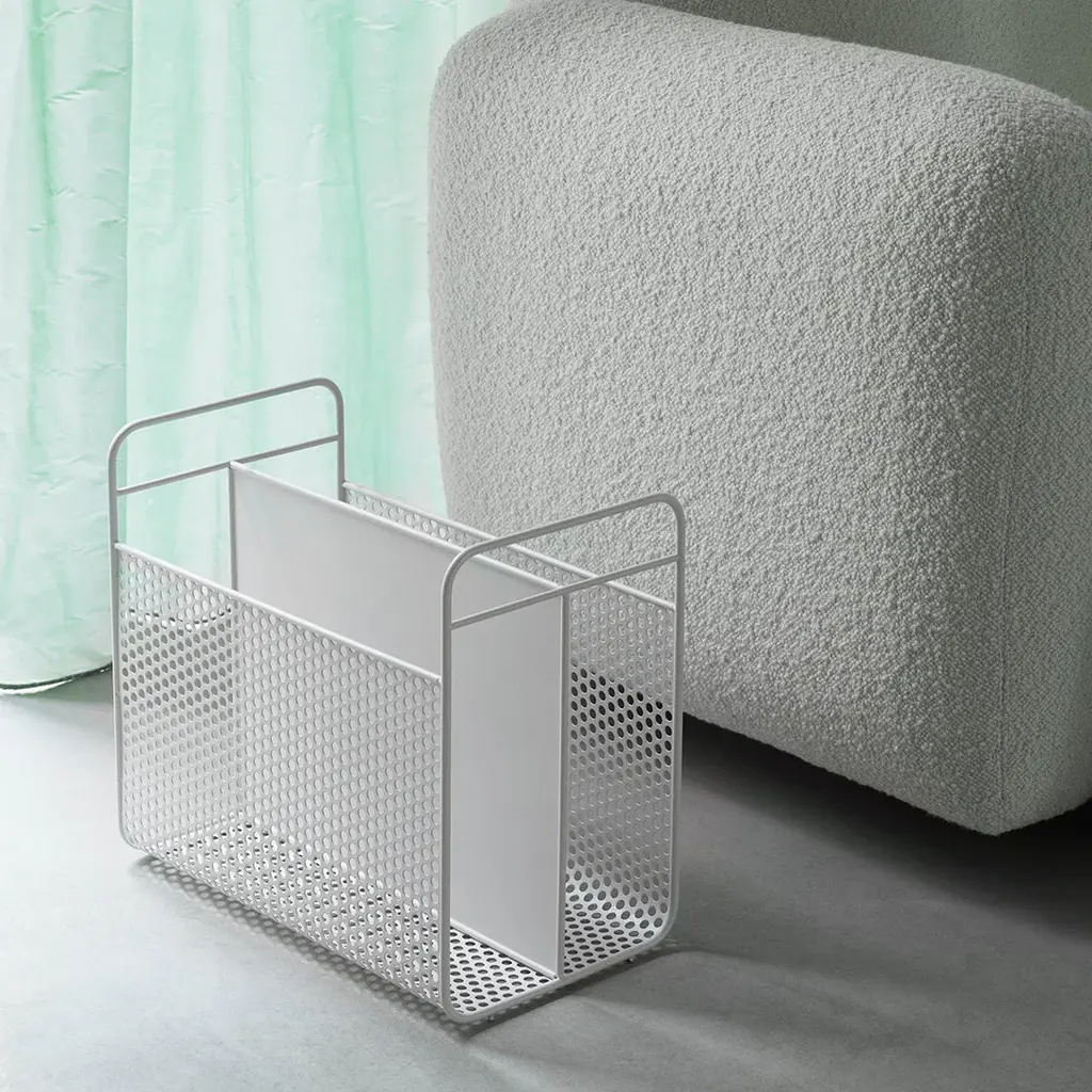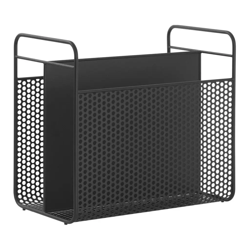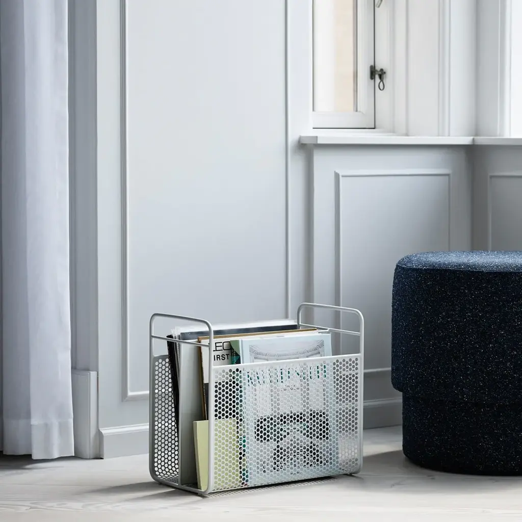 As a little revolt in a digital world, Simon Legald has designed the magazine rack Analog. Analog has a modern and underplayed design, which allows beautiful printed matter to come into its own. Oddly enough, the inspiration for Analog is taken from the digital world. The magazine rack's hole-patterned sides are inspired by the computer equipment of the 90's that had similar perforations for cooling down the electronics. While the details have a nostalgic nod to technology, the shape is classic: two separate compartments and practical handles form the basis for the design. The industrial, coated steel gives the rack a modern and masculine expression. With Analog, Simon Legald has created an unpretentious magazine rack that possesses a free and easy sense of coolness.