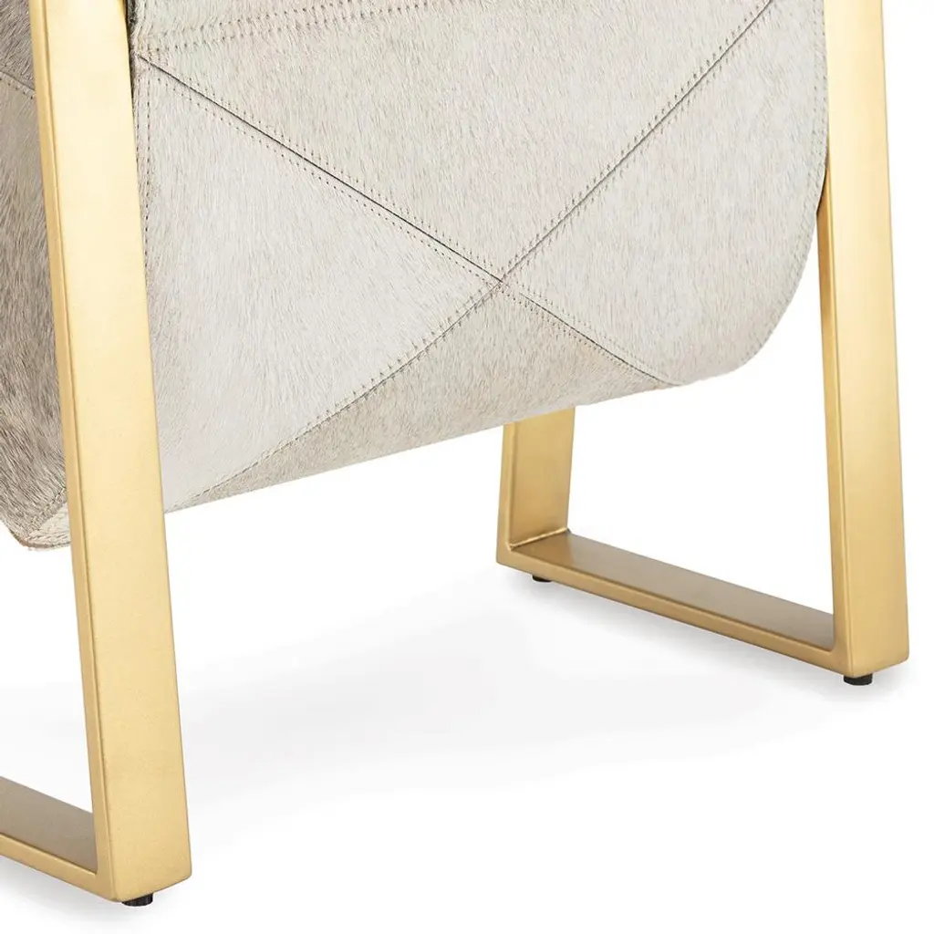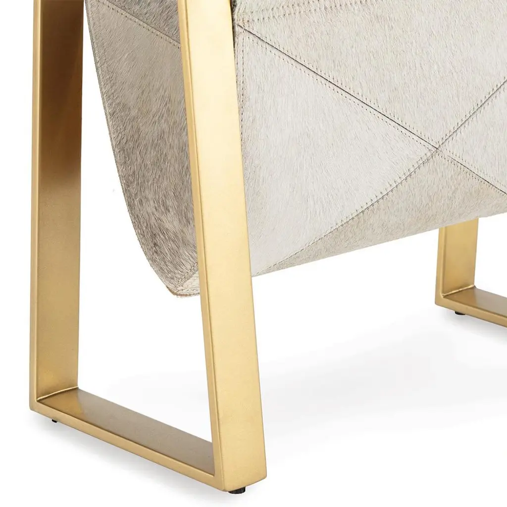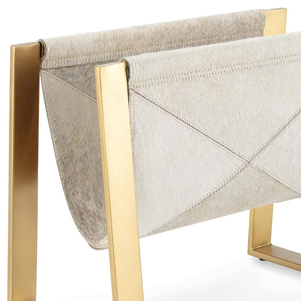Andres Hollywood Regency Brass Steel Grey Hide Magazine Rack