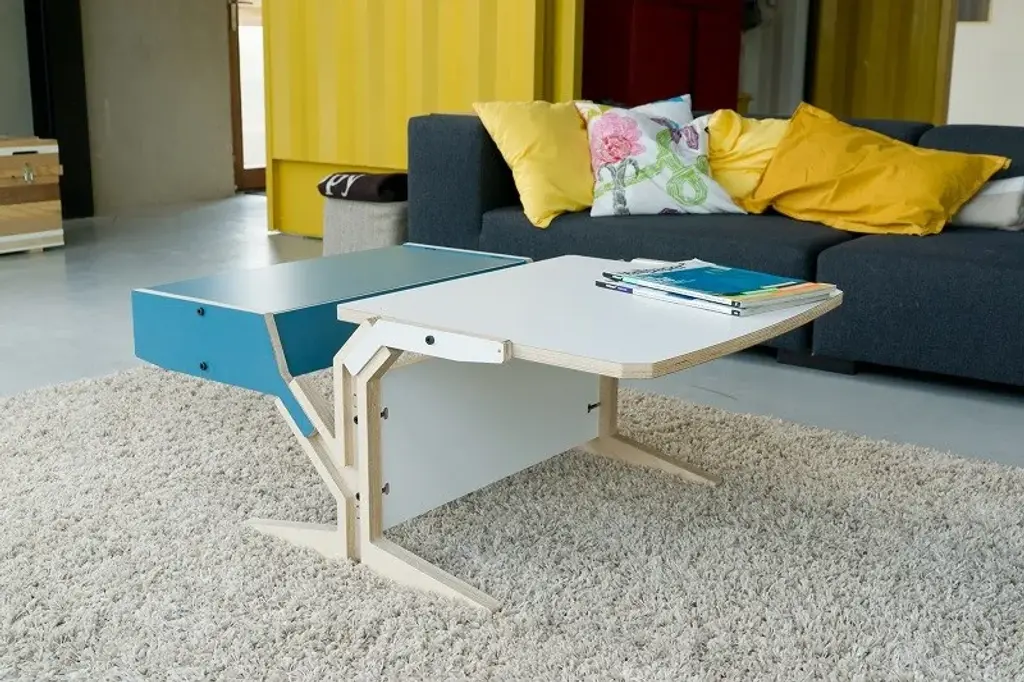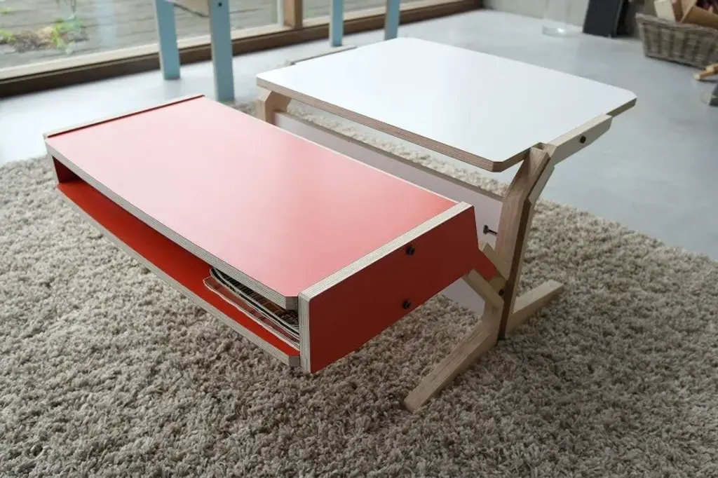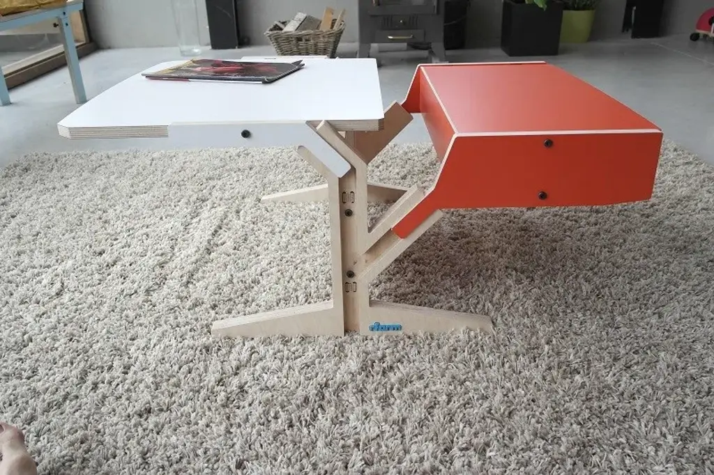 The rform Vegetale coffee and side table range is characterised by a natural sleekness reminiscent of tree branches. Featured here is the Vegetale Coffee Table version with one horizontal tablet and one storage box. The box and tablet are made from very sturdy birch plywood with a high-pressure laminate top layer. For the box you can choose from a variety of trendy colours. The legs are made from oiled birch plywood. The combination of the warm tones of natural wood and splashes of colour look simply beautiful.Two year warranty. Suitable for interior use only. Requires assembly, instructions and fixtures included. Natural wood surfaces treated with oil finish. This finish seals the pores of the wood, enhancing its natural structure and forming a water repellent protection against everyday wear and tear. Well protected against water, juices, wine, milk,... Just clean it with a wet towel.Product weight: 19 kgMATERIALlegs: birch plywood oiledbox & tablet: birch plywood with HPLDelivered well protected in a cardboard flatpack and eco-friendly cushioning materials.