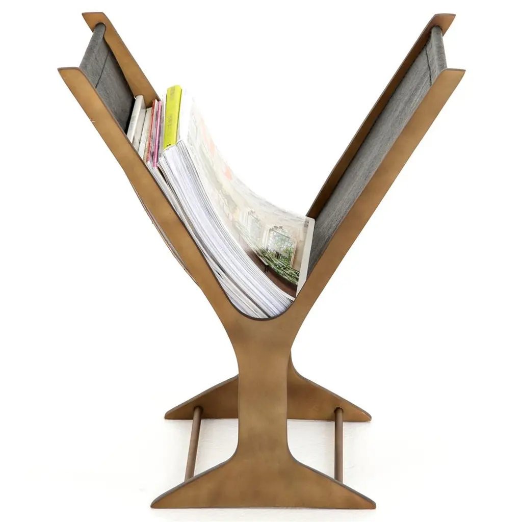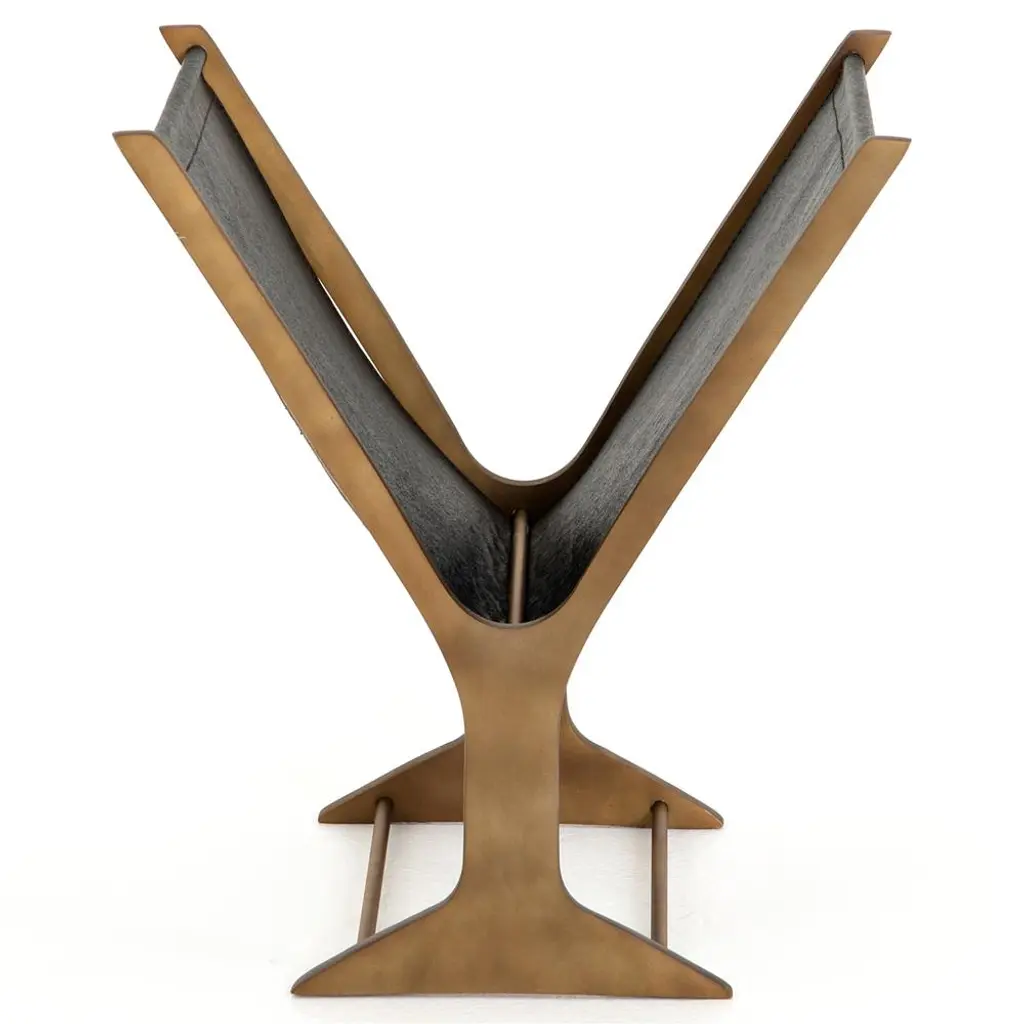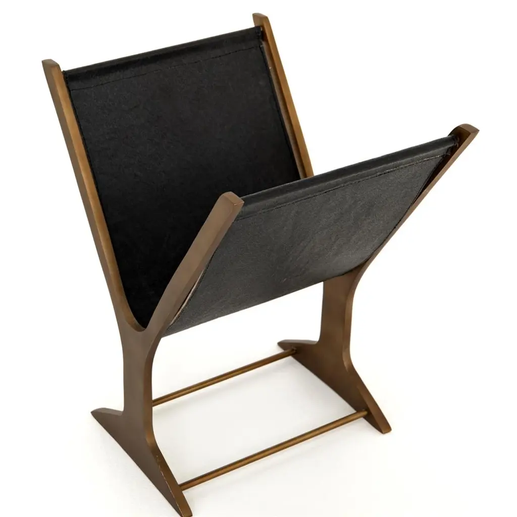 Fely Rustic Lodge Brown Aluminum Frame Black Faux Leather Magazine Rack