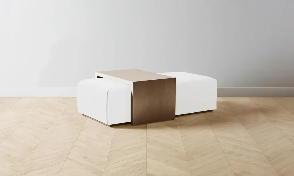 Roberto Lazzeroni designs a rectangle, two triangles, three squares, one of which with two table tops. The Fiorile side tables: soft, almost organic forms with rounded corners, each one different from the next, to combine freely creating unique geometric effects every time. The surfaces of the Fiorile are also set at different heights to make your space more dynamic and elegant.The base is made from solid ash in a moka or wenge stain with distinctive triangular cross-section. The top of the Fiorile side tables can be in Pelle Frau® leather, in birch plywood with an inlaid moka- or wenge-stained ash veneer, in Arabescato Venato marble with glossy and semi-glossy finish or in Calacatta marble with glossy and semi-glossy finish.
