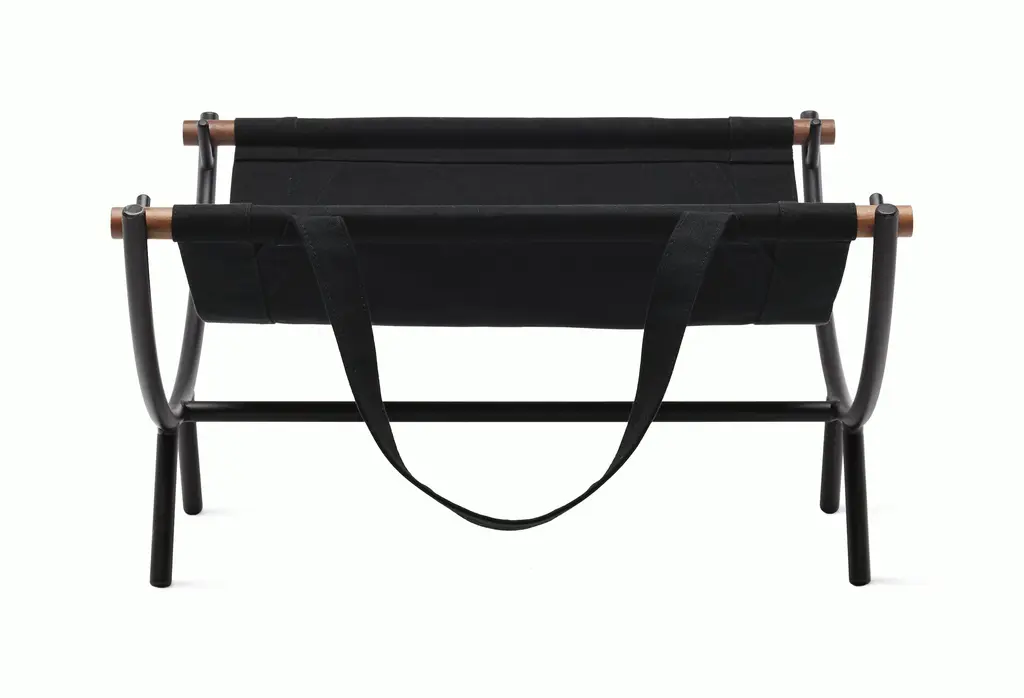 An Ex magazine rack designed by Sérgio Batista for Uultis with graphite metallic lacquer and leather. The Ex Magazine Rack by Uultis is a perfect union of form and function, offering a sophisticated way to organize your reading materials while enhancing your decor. Designed with a sleek graphite lacquered metal frame and soft yet durable leather, this magazine rack brings modern elegance to any space. Its minimalist structure allows it to blend effortlessly into contemporary, industrial, or mid-century interiors, while its premium materials provide a touch of luxury.This versatile piece is more than just a functional storage solution. In a living room, it keeps your favorite magazines and books within arm’s reach while adding a modern accent to your seating area. In an office, it organizes important documents or reading materials while elevating the overall aesthetic. Its lightweight and portable design also make it ideal for creating a cozy reading nook or adding a stylish touch to a bedroom corner. The leather details add visual and tactile interest, combining durability with an artisanal feel.Crafted with sustainability in mind, the Ex magazine rack reflects Uultis’ commitment to eco-friendly practices. The responsibly sourced materials and precision craftsmanship ensure this piece is not only elegant but also environmentally conscious. Delivered fully assembled, it’s ready to transform your space instantly with its sleek, contemporary charm. Choose the Ex magazine rack to bring stylish organization and sustainable design into your home, office or commercial setting.