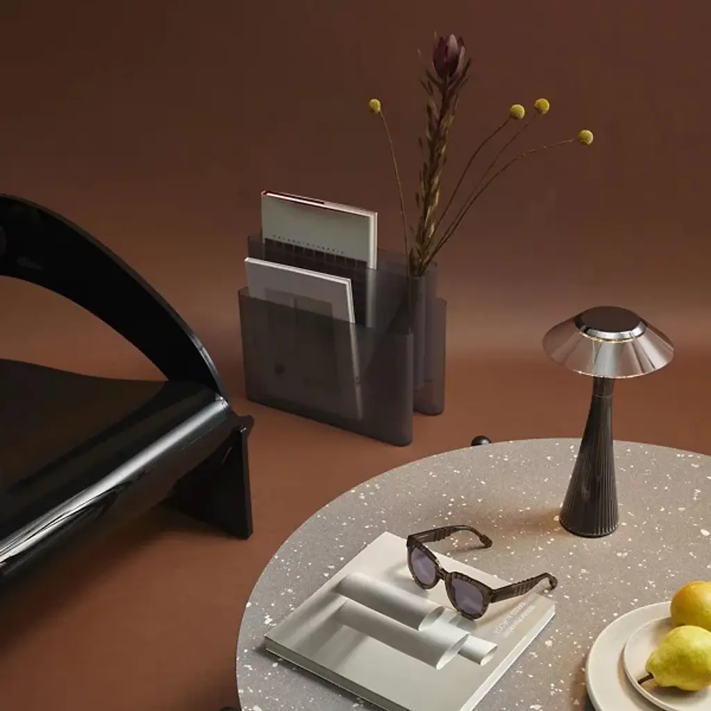 The Kartell Magazine Rack is a 4-pocket magazine rack with a central handle for ease of lifting. The shape is essential and decidedly practical, a beautiful object which can fit into any setting. The Magazine Rack features transparent or batch-dyed plastic.