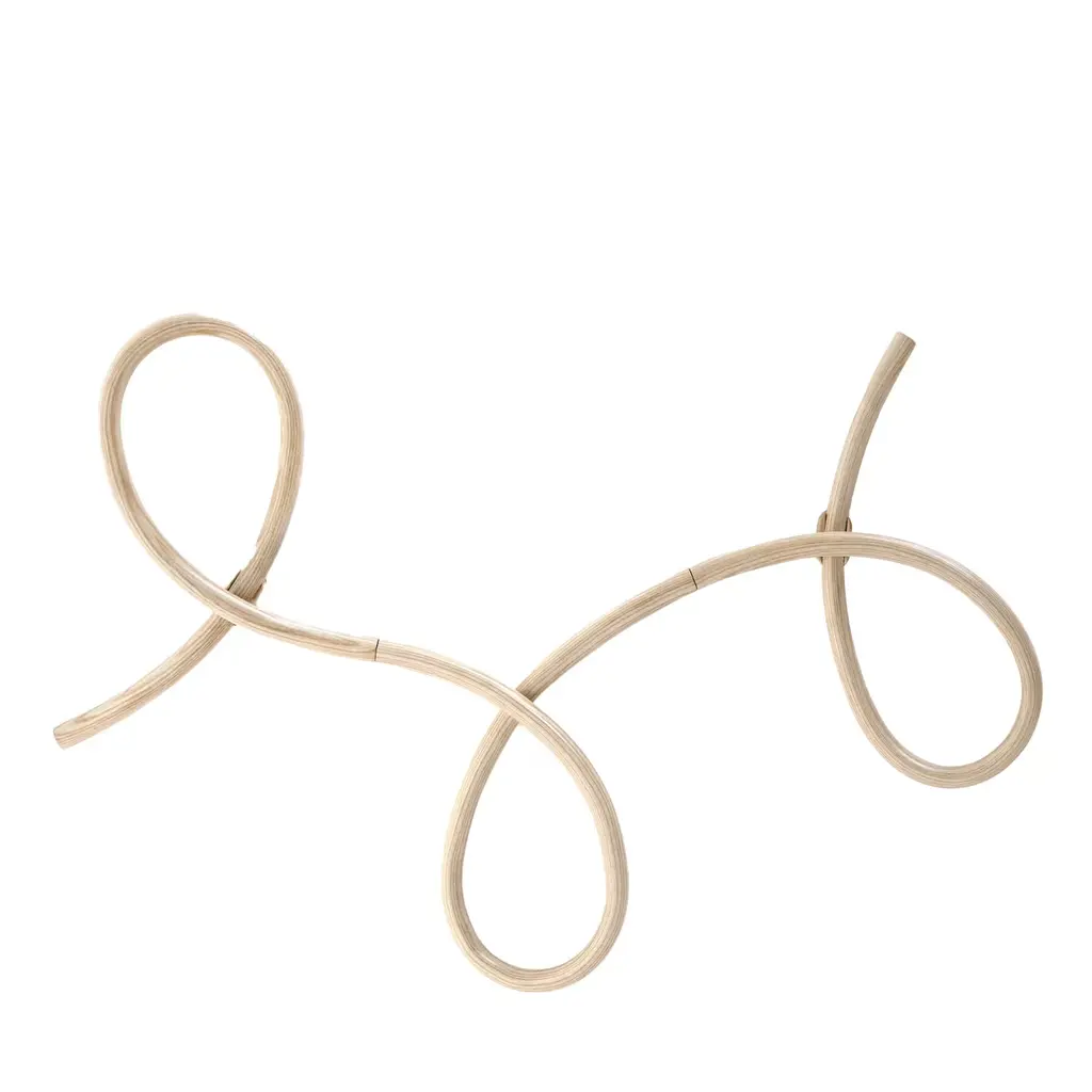 Original multiple magazine rack in curved beech wood, matt water-based varnished, composed of a pillar with three cylindrical containers that attach to it with a simple rotary movement. Signed by Maker