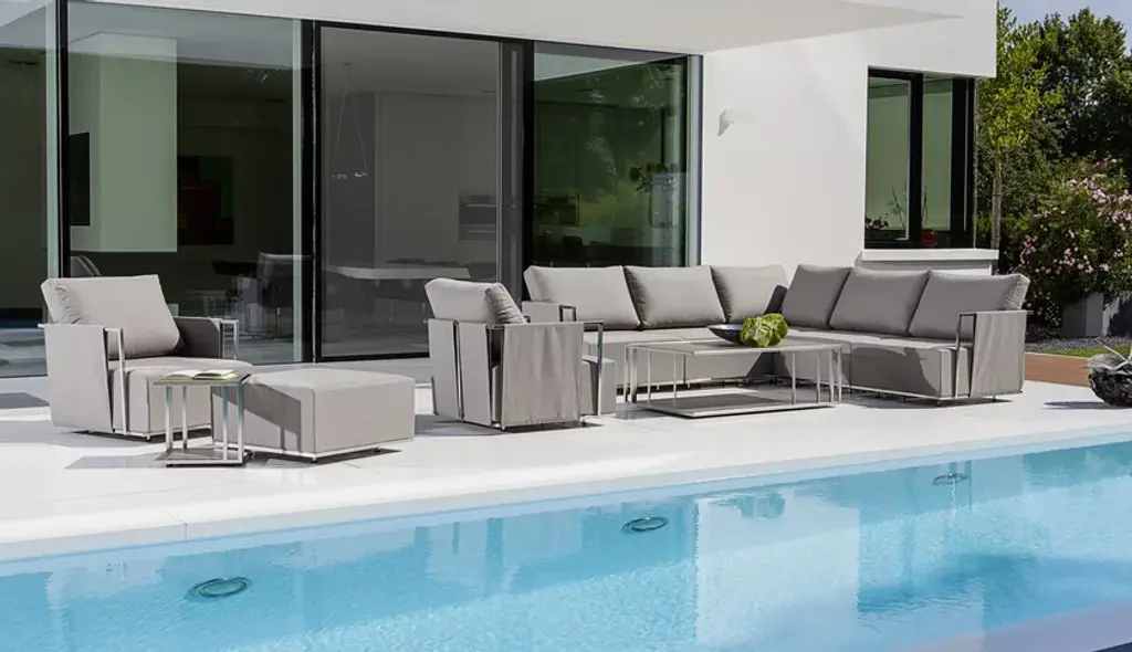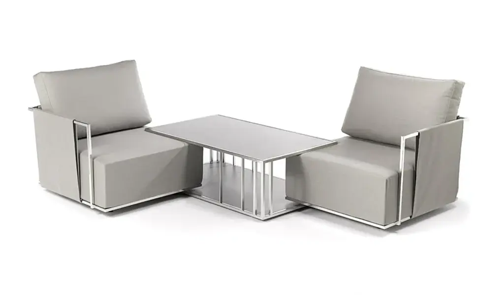 The Suite coffee table features an architectural clear design with an urban character. The modular construction offers many possible combinations and the useful side tables provide plenty of shelf space on two levels.The product family of the Suite Collection includes not only the versatile lounge furniture as well as the Suite armchairs and tables. Now the new high-dining and bar series complement the collection perfectly. The collection grows and diversifies since 2016 due to the high acceptance of our customers. These furniture pieces can be used perfectly in different settings due to the fine tuning of the design and materiality.The uncommon chair is made of a combination of anthracite powder coated stainless steel and a textile band which is ideally suited for outdoor use. It offers an exceptionally high level of comfort and invites you to sit out and relax at the table. The fine tuning in the design of the table style sets its own standards. Here, a special harmony of elegance, filigree shape and solid construction has been found. The tables are available in a diverse range of sizes and finishes.For Suite, the name symbolizes the claim of the furniture. As in the amenities of an elegant hotel suite, the armchairs and tables fit in any sophisticated ambience. The glamorous, exclusive style of the furniture is suitable for all settings that are arranged in a modern yet timeless style.