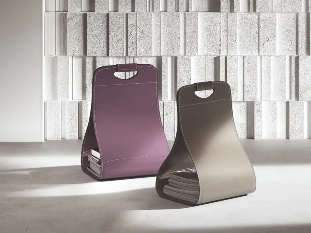 TETI is the new magazine rack in leather by LIMAC Design®. It is also available in Lavender color, a 2022 trendy nuance.Colors: Dark brown, Black, White, Gray, Anthracite, Red, Brown, Yellow, Lavender.