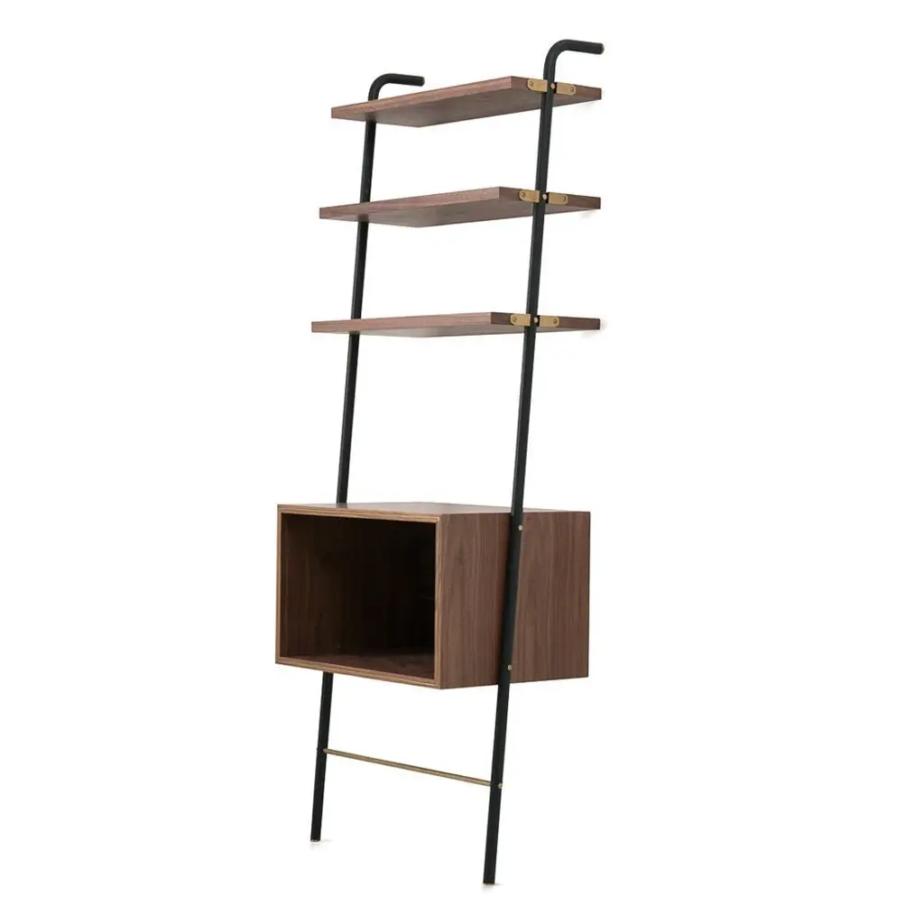Combining a holdall for periodicals with a walnut desk and 3 shelves for displaying objects and books, celebrated architect and designer David Rockwell creates an extraordinary piece with his signature urbane style. From his Valet collection for Stellar Works, it's a mix of luxe elements in handcrafted harmony. To wit: a graceful powder-coated steel frame, walnut veneer shelves with brass detail and a burnished leather cradle for holding reading matter.