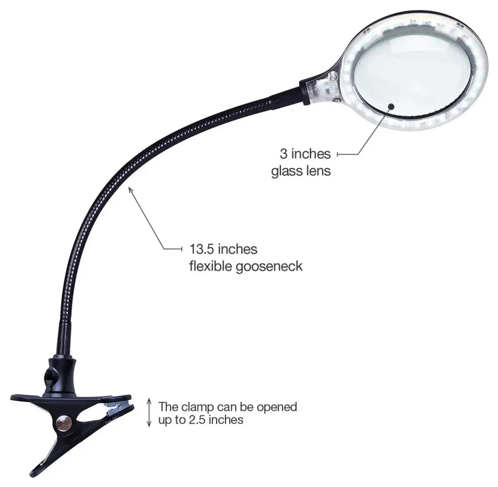 Ultra Bright Magnifying Lamp For Reading, Work, Or HobbiesThe Brightech LightView Flex Super Bright LED Magnifying Clamp Lamp is designed for anyone with vision problems such as macular degeneration or those who need to constantly focus up close on their work or hobbies. This lamp has an authentic 3 inch diopter glass lens that shines daylight bright light without any glare and 175% or 1.75x magnification so that you can enjoy your work or hobbies without eye strain.Clamp Lamp Easily Attaches And DetachesThis UL Certified, heavy duty, extremely stable clamp opens up to 2.5 inches and conveniently attaches to a desk, workbench, or table. It is lightweight making it easy to detach and reattach to any surface that you need. The gooseneck and flexible head allows for bending and swiveling 360 degrees so that you can position the light where your eyes need it most. The detachable mobility and adjustability of this lamp make it ideal for work or hobbies. Versatile, Adjustable & Stays Cool To The TouchThe Pro-Flex Lamp is fully adjustable with a flexible gooseneck that will bend in any direction so that you can position the light and magnifier perfectly. It always stays cool to the touch making it easy to adjust the lamp comfortably while you work. This lamp is perfect for reading, crossword puzzles, needlework, knitting, crocheting, cross stitch, beading, arts, crafts, repairing electronics, woodwork, jewelry making, or professional use. Long Lasting & Energy EfficientThis lamp includes a 6 Watt power-saving integrated LED light that will last more than 20 years and will not need to be replaced. Its advanced 6,000K cool white LED technology with an output of 570 lumens allows it to outshine lamps that depend on short-lived, energy consuming standard halogen or incandescent bulbs. This lighting will last for more than 20 years without burning out or overheat. Equals 40W incandescent 3 Year Satisfaction Guaranteed:Our goal at Brightech is to provide creative, innovative, and beautiful lighting so that everyone can have quality, high-end lighting in their home and office. We proudly stand behind all of our products 100%, which is why we offer a Full 3-Year Warranty.