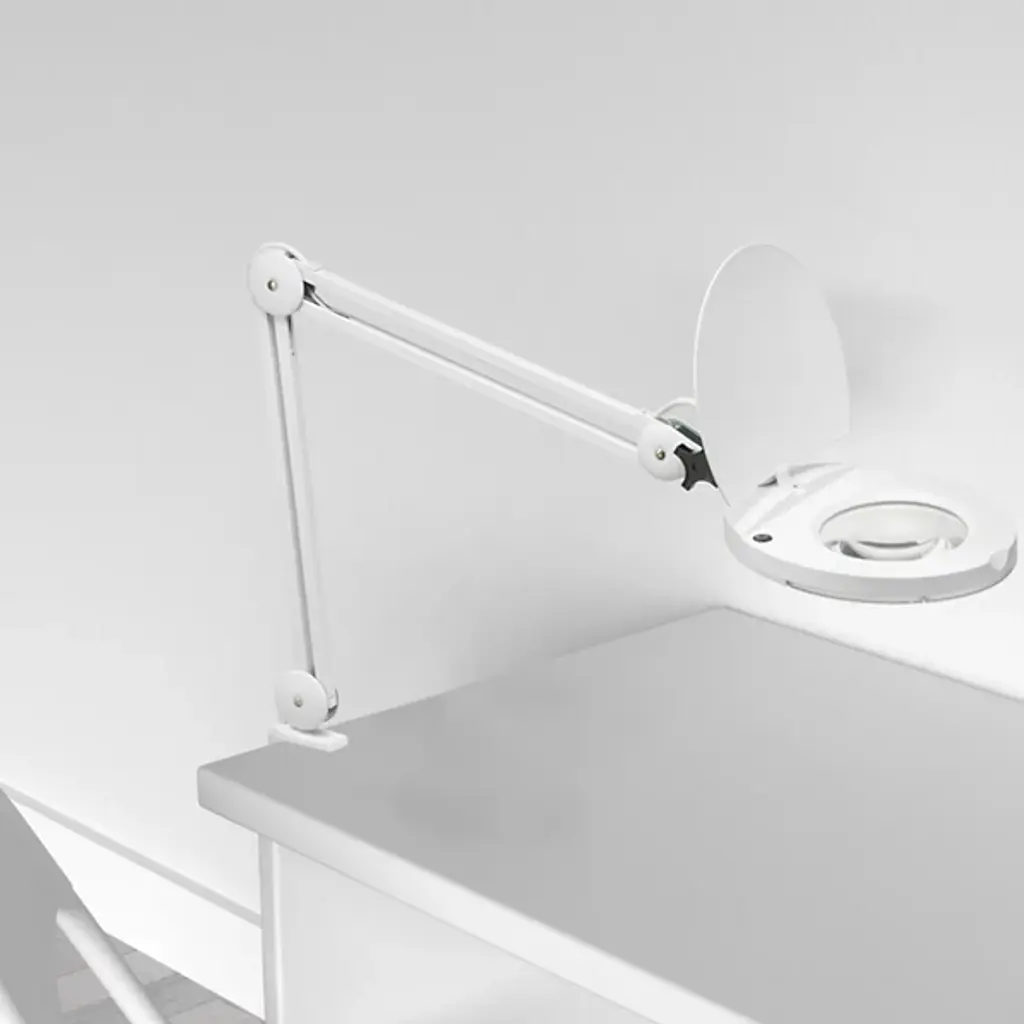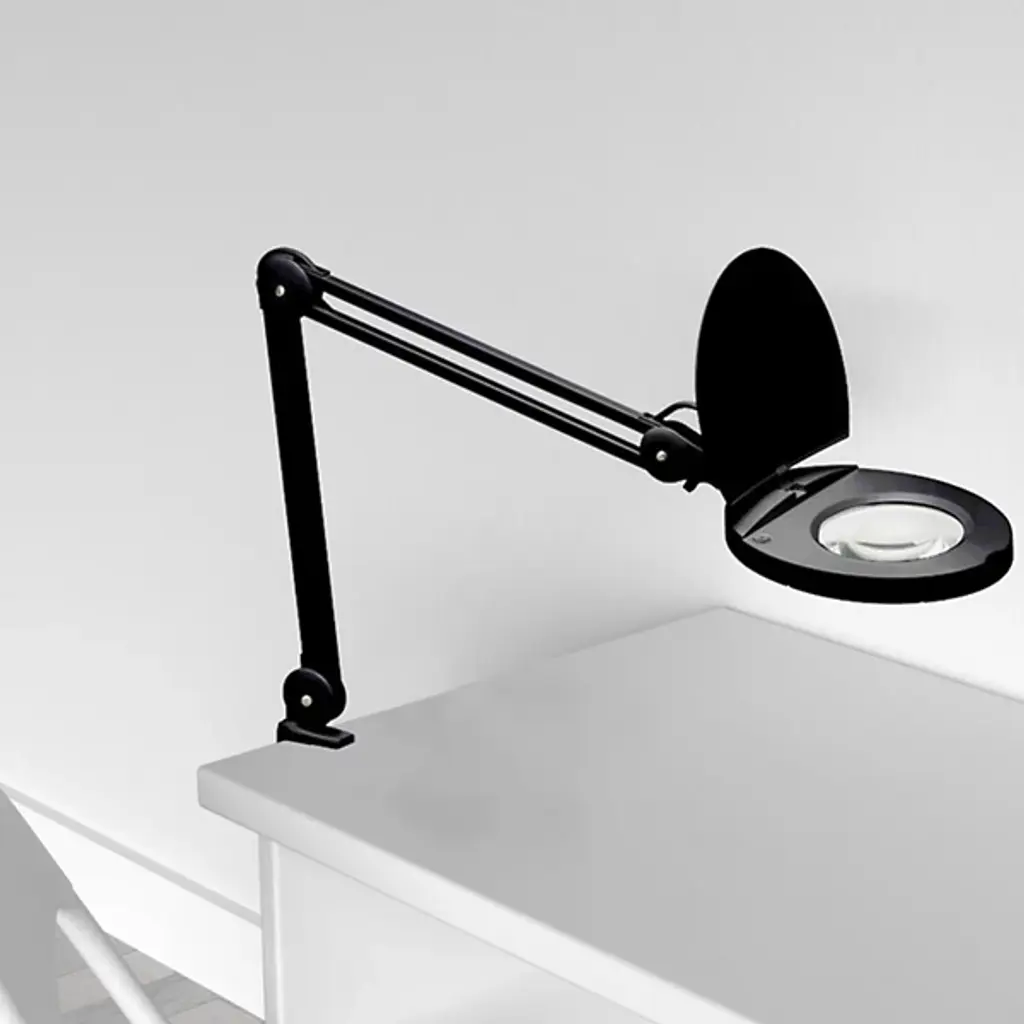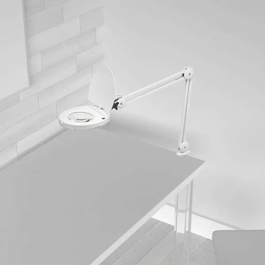 Presented by Dainolite, the design of the Magnifier LED Clamp Lamp is both highly practical and intriguing to the eye. The design features an integrated LED light for eco-friendly appeal via a long lifespan and low energy consumption. The metal frame is installed on a table, desk, or shelf, with an articulated arm that can be adjusted to the desired angle. A dimmable LED and magnifying function make it the perfect addition to your favorite reading or work corner.