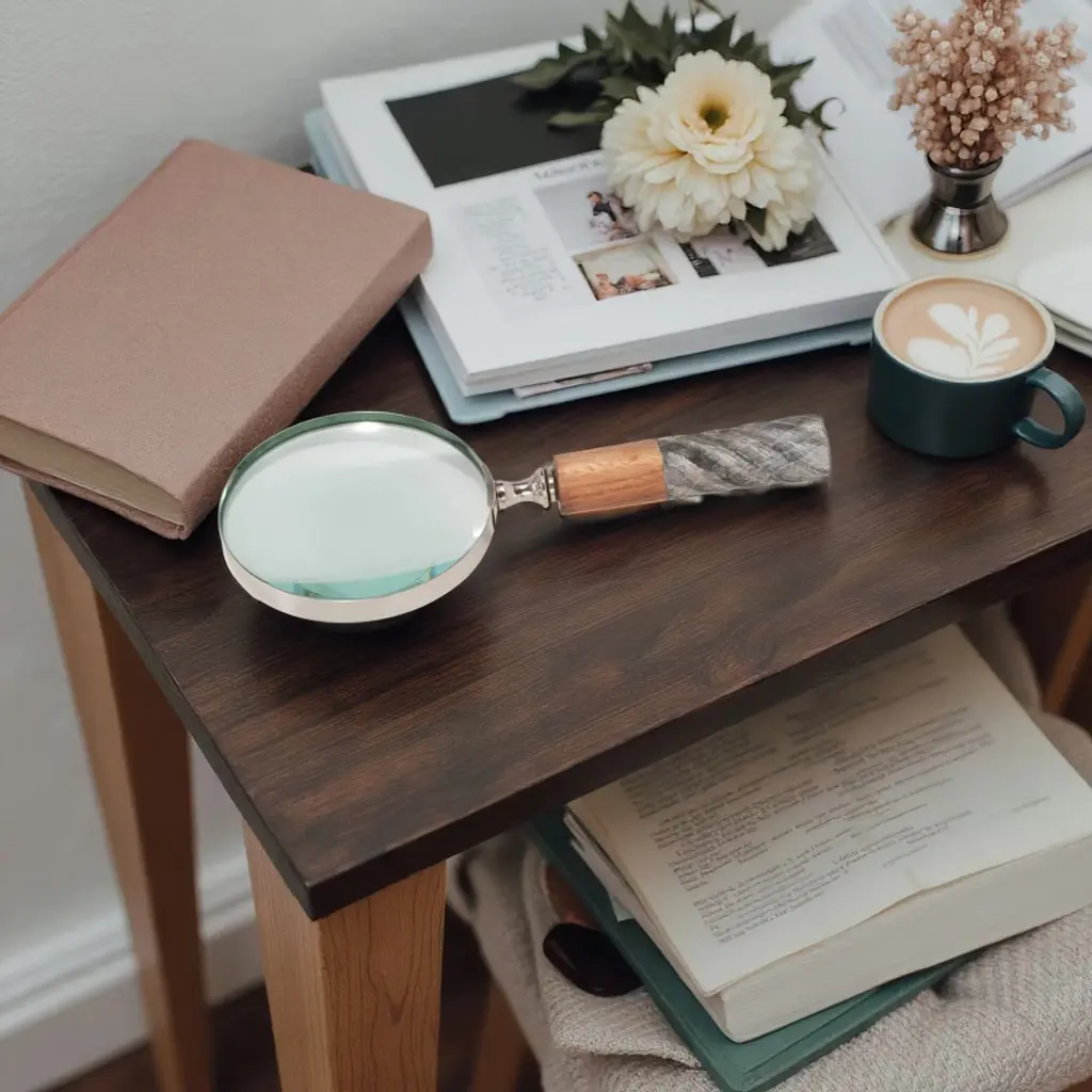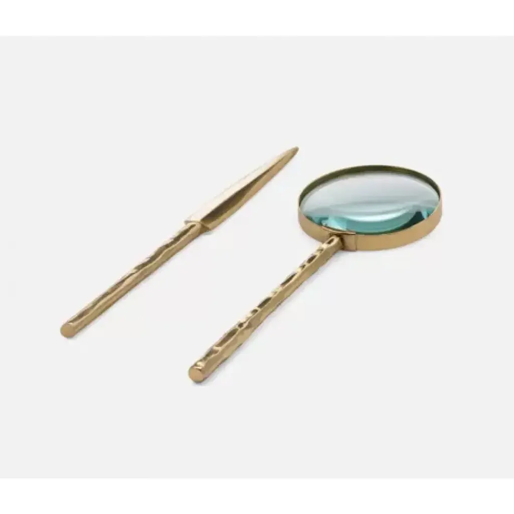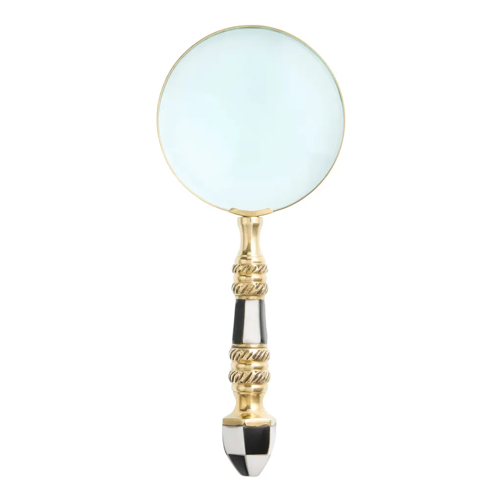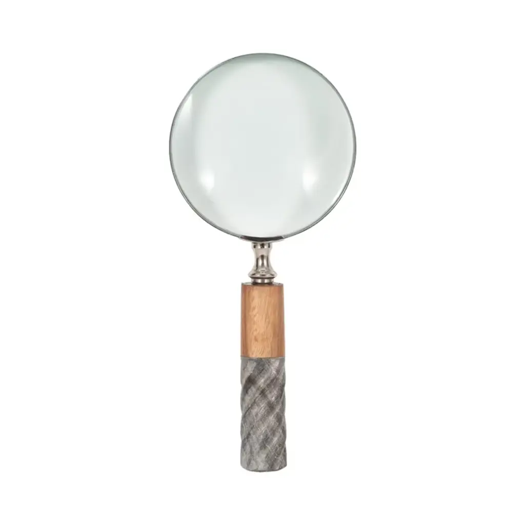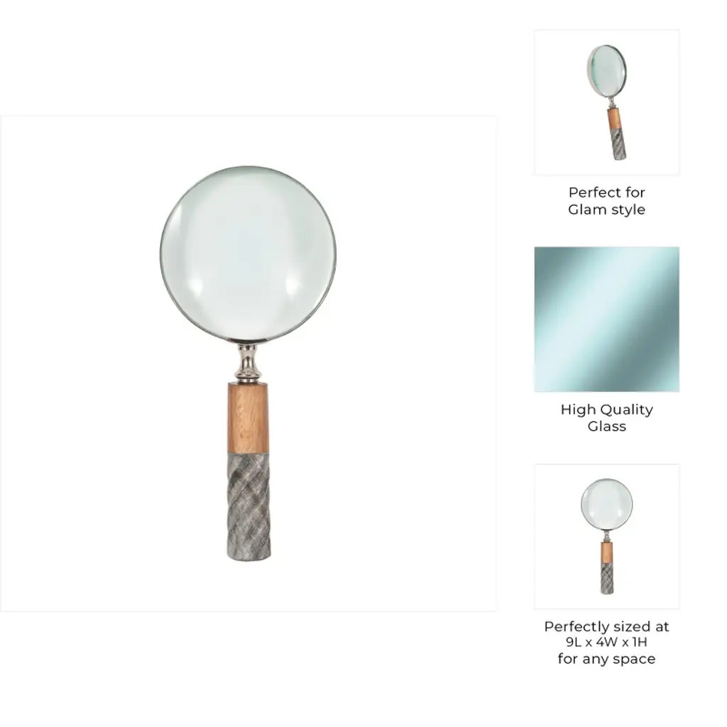 It doesn't take a detective to discover that this high quality home decor belongs in your home! This attractive magnifying glass decor is crafted out of a durable combination of marble, glass, wood and brass, creating a high quality decorative accent that will easily fit into any home or office space. The classic decor piece will bring a sense of timeless, classic sophistication, fitting in easily on any desk, mantle, bookshelf or coffee table. The stylish magnifying glass includes a round glass magnifier sitting on top of a decorative marble handle in gray and brown.