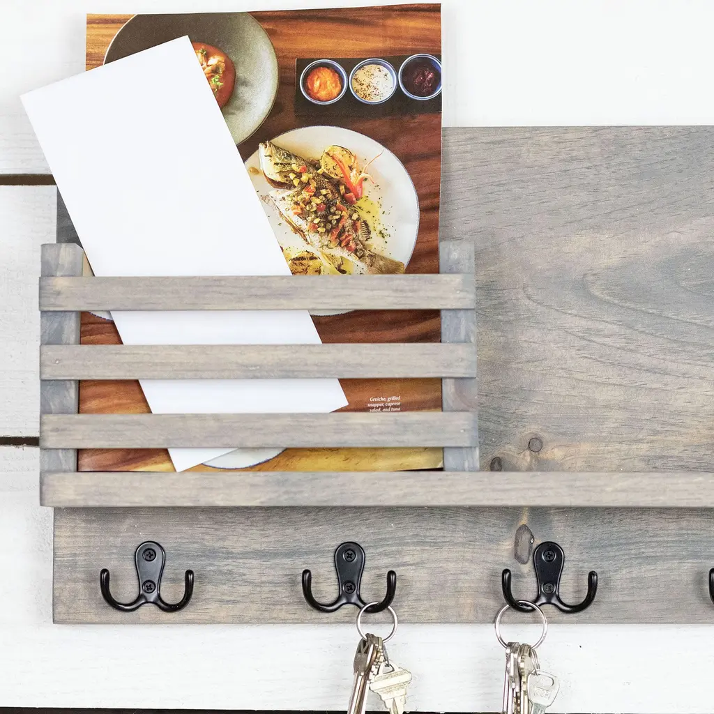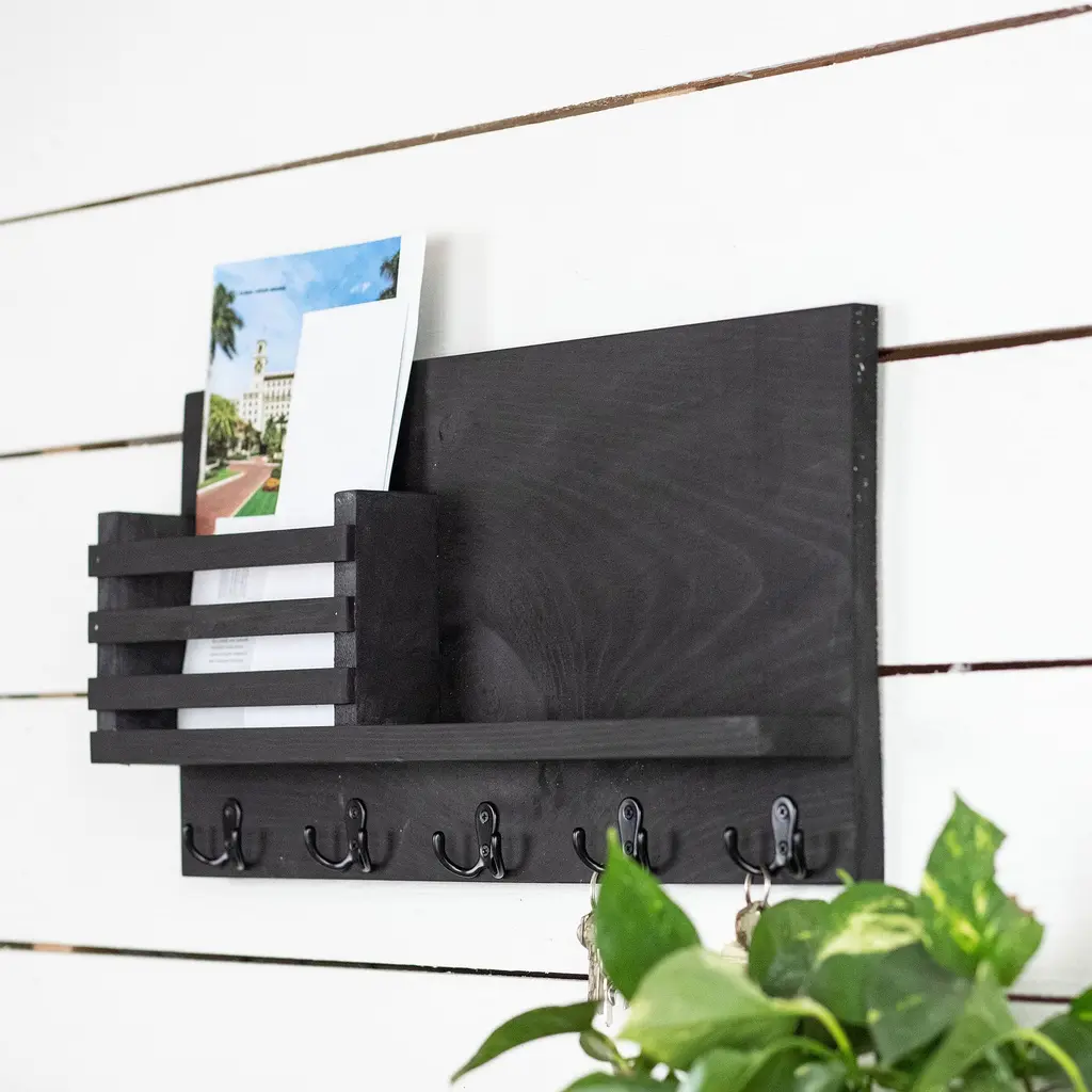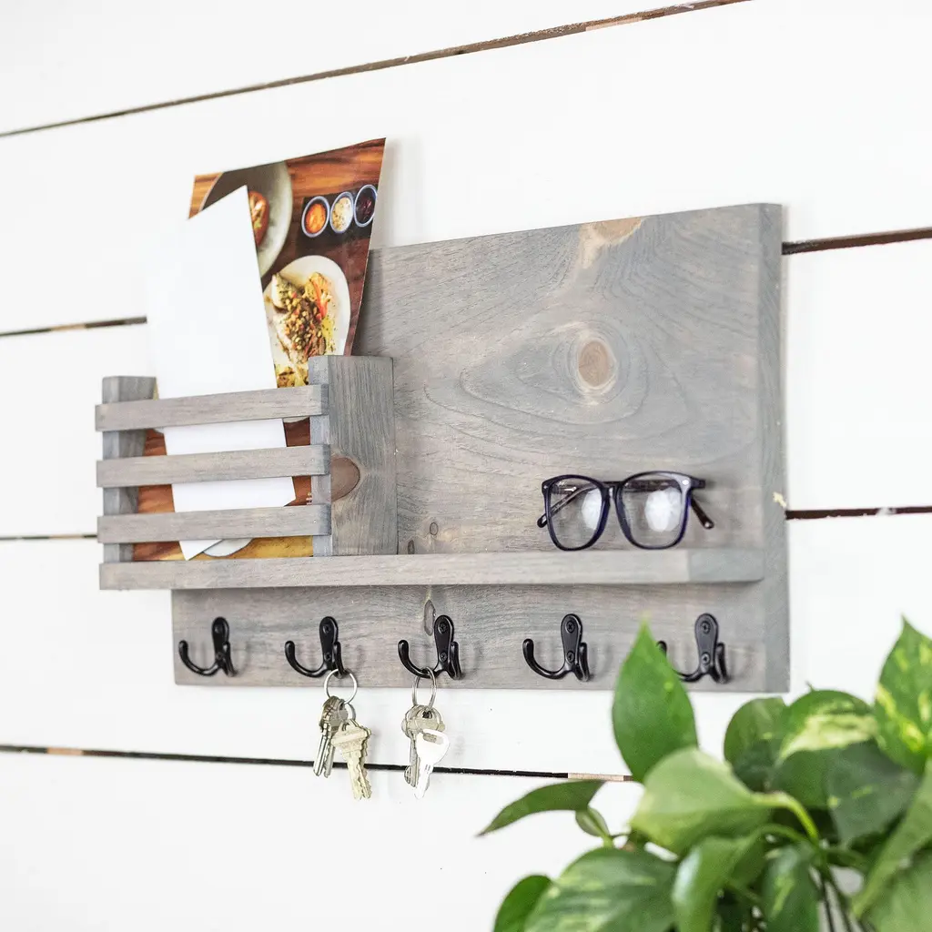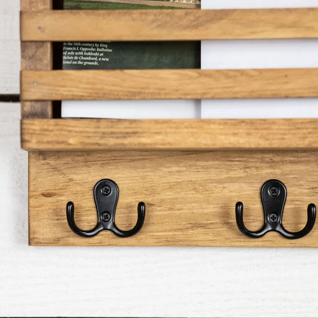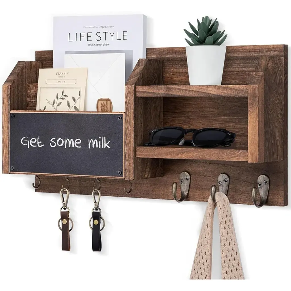 It's a multifunctional entryway organizer. Includes a mail slot and hooks for keys and bags.Easy to hang with two keyhole hooks.