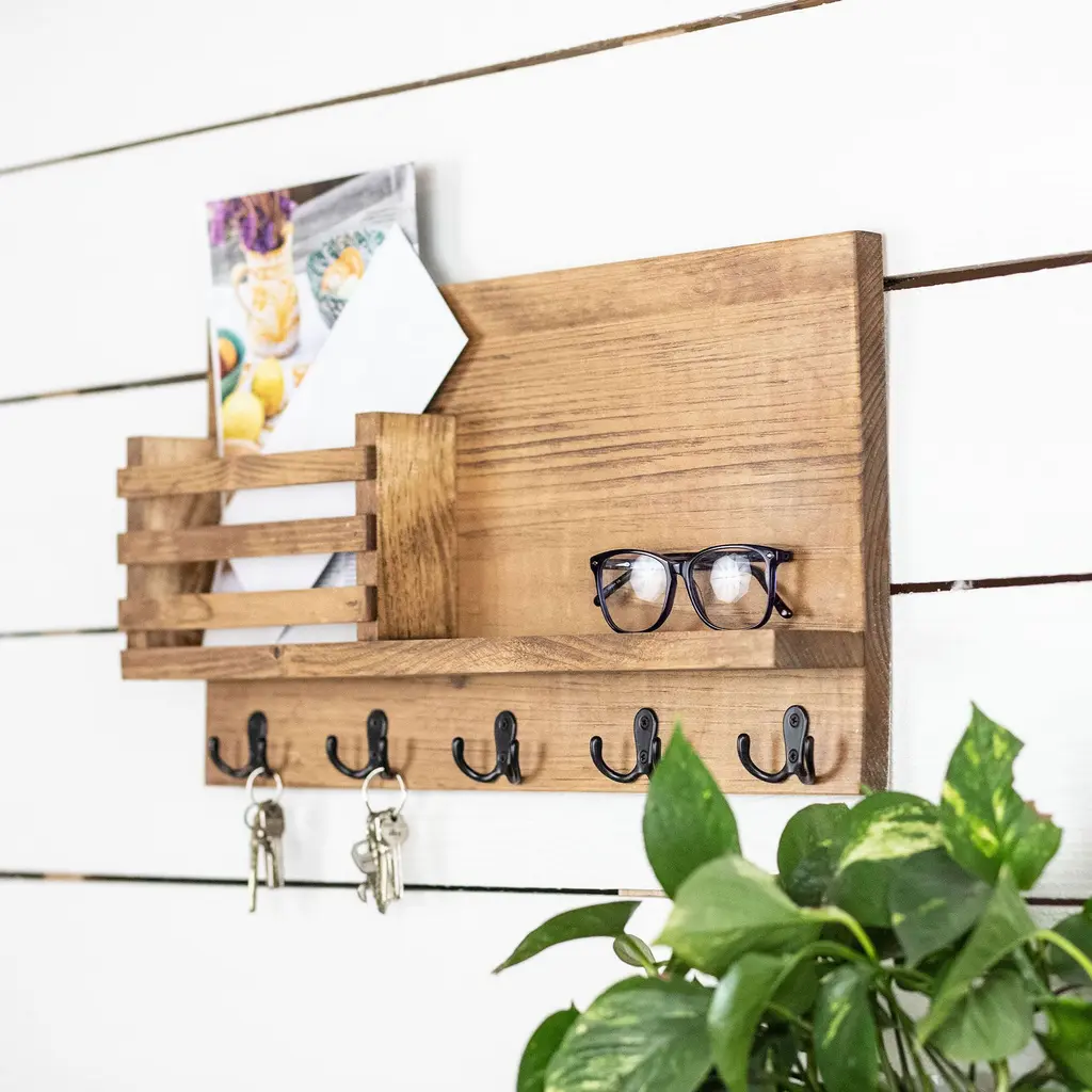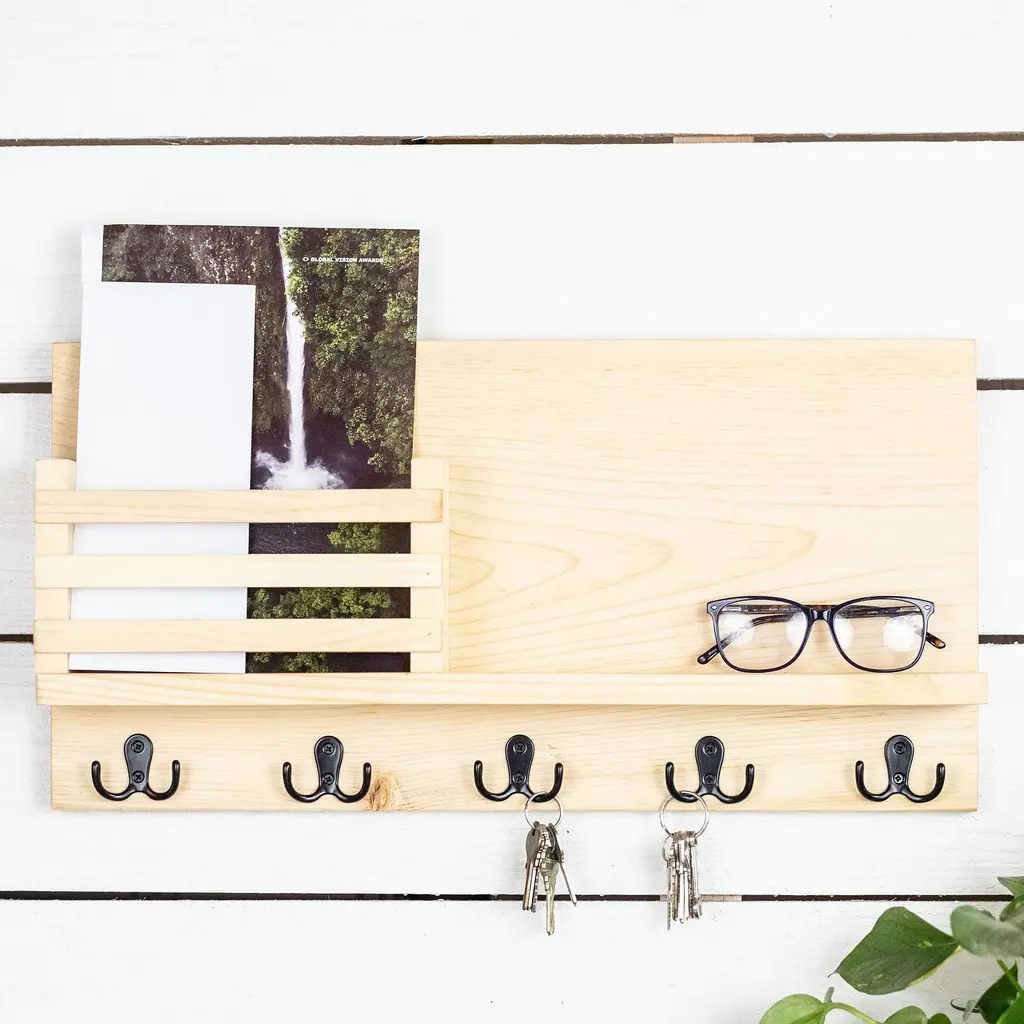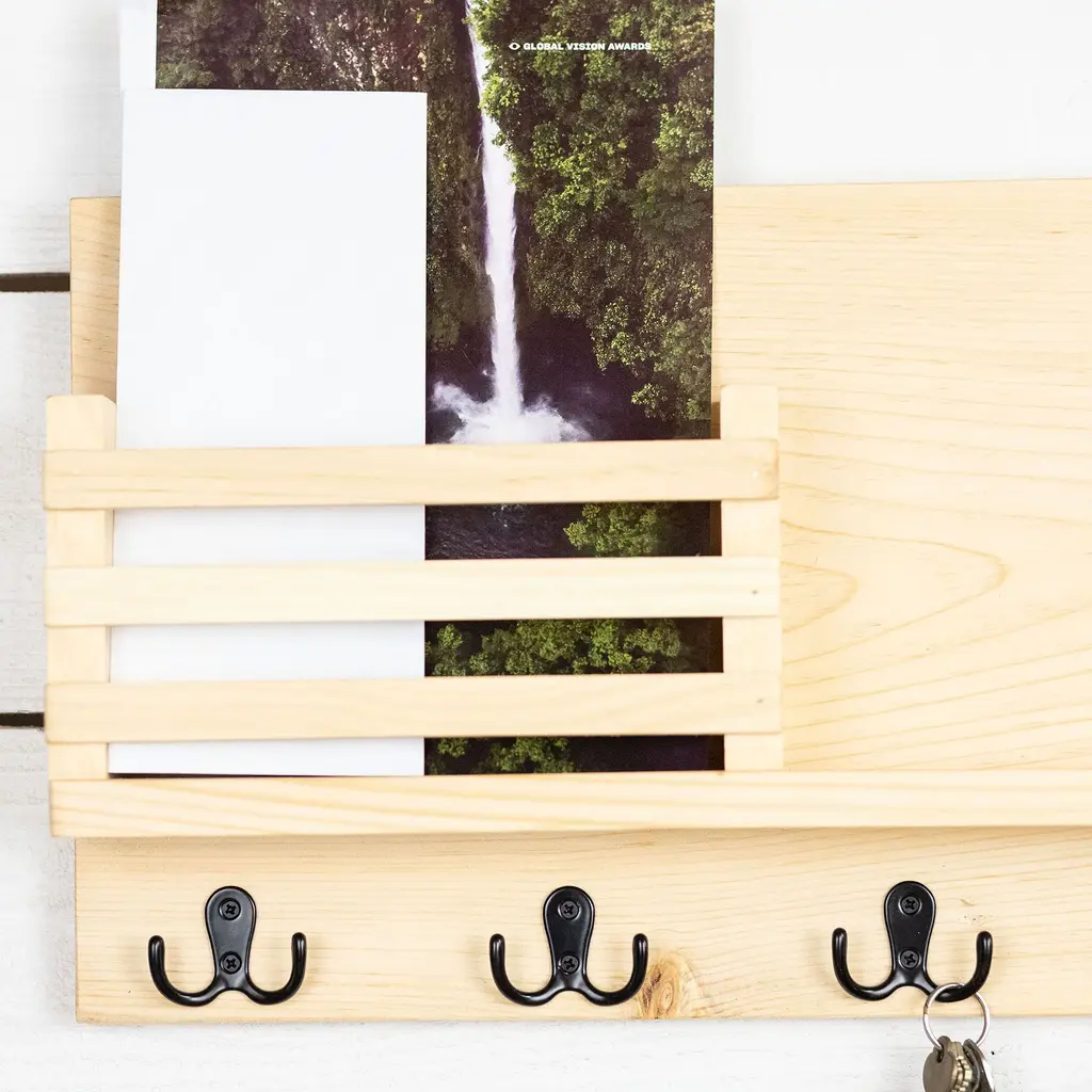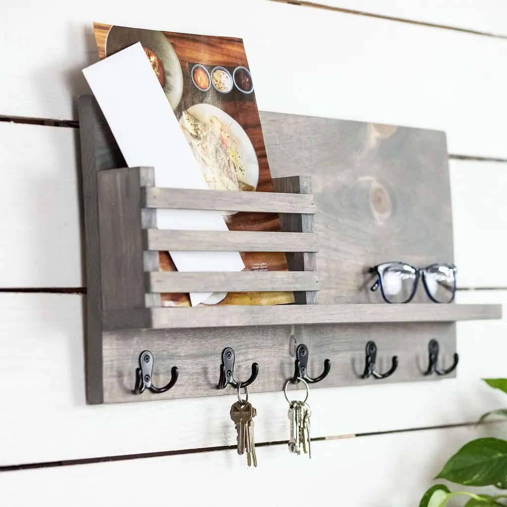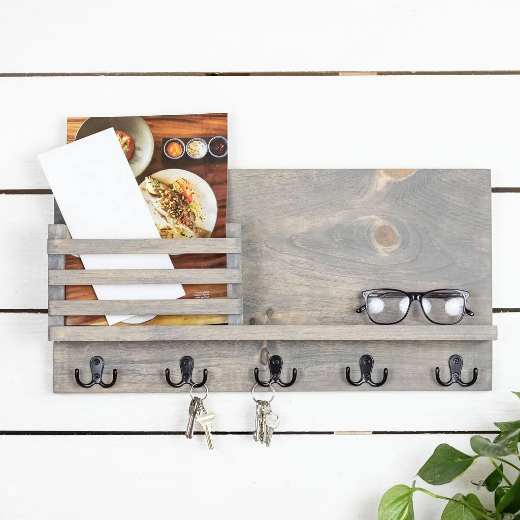 It's a multifunctional entryway organizer. Includes a mail slot and hooks for keys and bags.Easy to hang with two keyhole hooks.