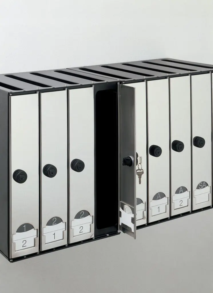 3 Mailbox by Lluis Clotet & Oscar Tusquets Dimensions: D 32 x W 24 x H 40 cm Materials: Made up of steel sheets painted in a black polyester powder coating (RAL 9005). Doors in polished stainless steel with a transparent acrylic window and white labeling card.Also available with 4 or 5 units.Tusquets and Clotet designed the first letterboxes which were placed “in rowlock” that is vertically on one edge. This way they could offer more capacity than the traditional letterbox, visually occupying much lesser space. The letterbox 3-4-5 has been in BD’s catalog for over 30 years and has become a classic in Spanish design.In 1972, a group of young architects and designers from Barcelona created BD with the aim of producing and marketing furniture and other objects for our projects, with complete creative freedom and with a criterion that has turned out to be quite different from the norm at companies in the sector, regarding both the shape and function.