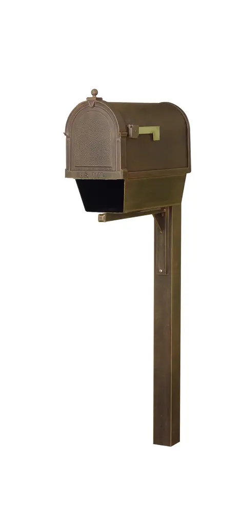 The Berkshire Curbside Mailbox presents an impressive face. The one piece cast aluminum door features deeply cut details with a rich, leather grain textured panel. The stainless steel spring hinge and magnetic catch will keep the door secure and the rust proof cast aluminum body construction creates a weather resistant mailbox. Newspaper Tube is Included.The traditional square mailbox post design with a decorative upgrade! Sturdy with clean lines theWellington post fits perfectly with any style of home architecture. Quick and easy direct burial will make assembly simple. No wood post needed! This is not a sleeve like many other companies use. This is a single 3" x 3" aluminum sturdy bodied post capped with a pyramid topper. The contemporary aluminummounting bracket easily attaches to the post. Made entirely of aluminum with stainless steel components to eliminate rusting. Direct burial installation is required.This mailbox combination also includes an easy to install locking insert, to help protect from identity theft. Manufactured from rust free powder coated aluminum, the Lock Box firmly attaches to the bottom of the mailbox and cannot be removed without the key. The Lock Box insert is easly installed with four screws (included). Consult your local postmaster regarding regulations governing the installation of locking inserts.