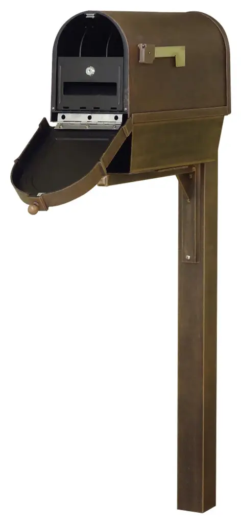The Berkshire Curbside Mailbox presents an impressive face. The one piece cast aluminum door features deeply cut details with a rich, leather grain textured panel. The stainless steel spring hinge and magnetic catch will keep the door secure and the rust proof cast aluminum body construction creates a weather resistant mailbox. Newspaper Tube is Included.The traditional square mailbox post design with a decorative upgrade! Sturdy with clean lines theWellington post fits perfectly with any style of home architecture. Quick and easy direct burial will make assembly simple. No wood post needed! This is not a sleeve like many other companies use. This is a single 3" x 3" aluminum sturdy bodied post capped with a pyramid topper. The contemporary aluminummounting bracket easily attaches to the post. Made entirely of aluminum with stainless steel components to eliminate rusting. Direct burial installation is required.This mailbox combination also includes an easy to install locking insert, to help protect from identity theft. Manufactured from rust free powder coated aluminum, the Lock Box firmly attaches to the bottom of the mailbox and cannot be removed without the key. The Lock Box insert is easly installed with four screws (included). Consult your local postmaster regarding regulations governing the installation of locking inserts.