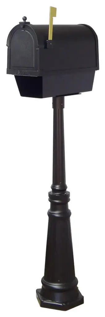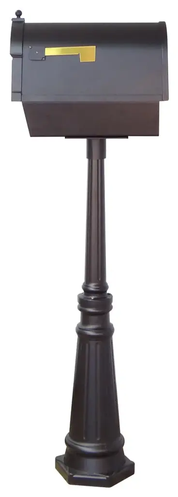 The Berkshire Curbside Mailbox presents an impressive face. The one piece cast aluminum door features deeply cut details with a rich, leather grain textured panel. The stainless steel spring hinge and magnetic catch will keep the door secure and the rust proof cast aluminum body construction creates a weather resistant mailbox. Newspaper tube is included.The Tacoma surface mount mailbox post is made of cast aluminum. Post dimensions are 42" H x 9" Dia. Base. Surface Mount installation is required.This mailbox combination also includes an easy to install locking insert, to help protect from identity theft. Manufactured from rust free powder coated aluminum, the Lock Box firmly attaches to the bottom of the mailbox and cannot be removed without the key. The Lock Box insert is easly installed with four screws (included). Consult your local postmaster regarding regulations governing the installation of locking inserts.